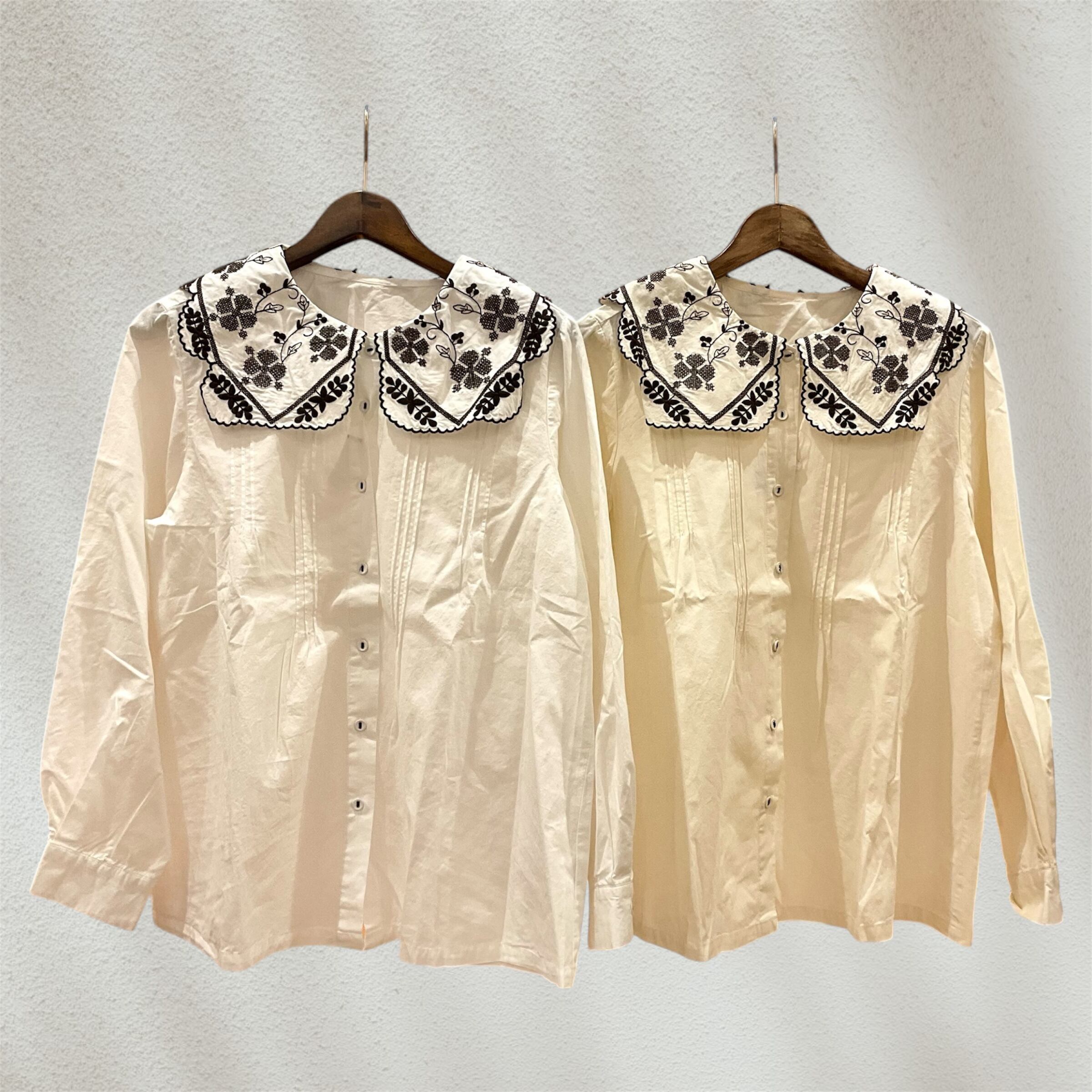 四葉刺繍襟ピンタックブラウス(WCS-1515)