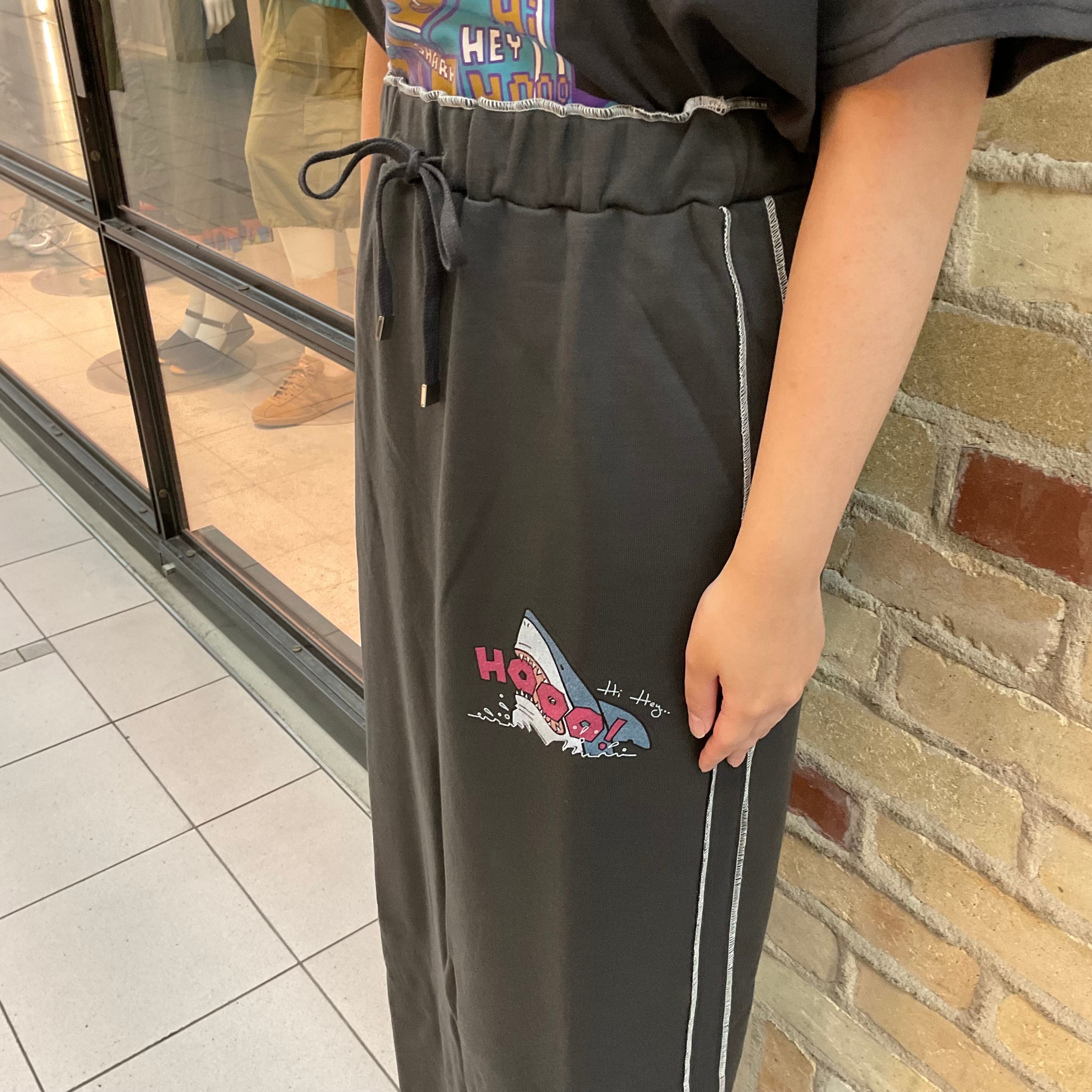:【Hi Hey Hooo!!!】Hooo & サメ プリント配色ステッチ スウェット裏毛スカート(H1240026)