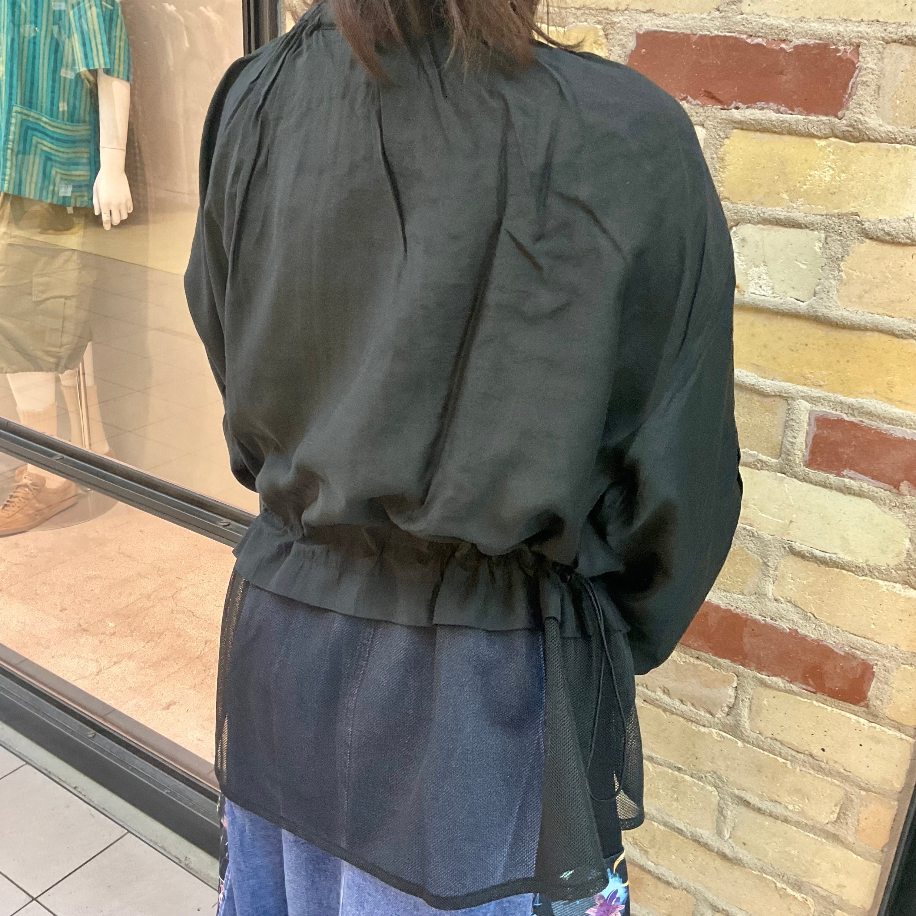 裾に切り替えたメッシュ生地とドローストリングがスポーティーな雰囲気もあり