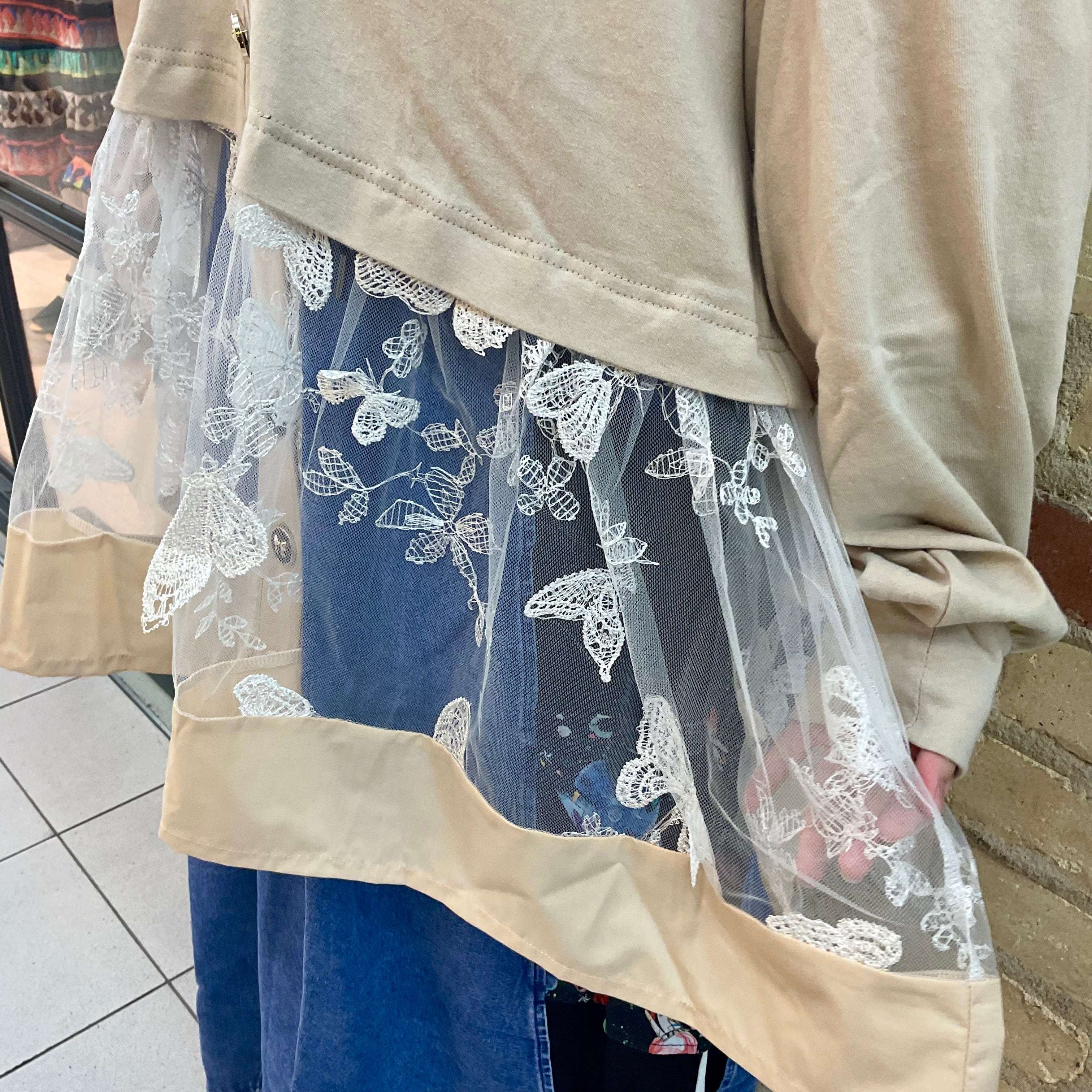 :【ScoLar】蝶柄チュール切替カーディガン(552274)