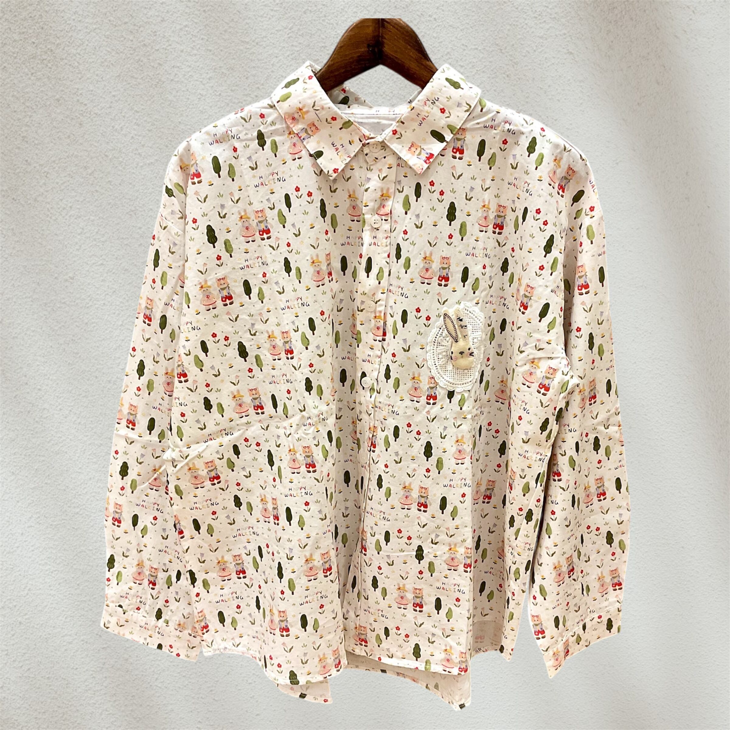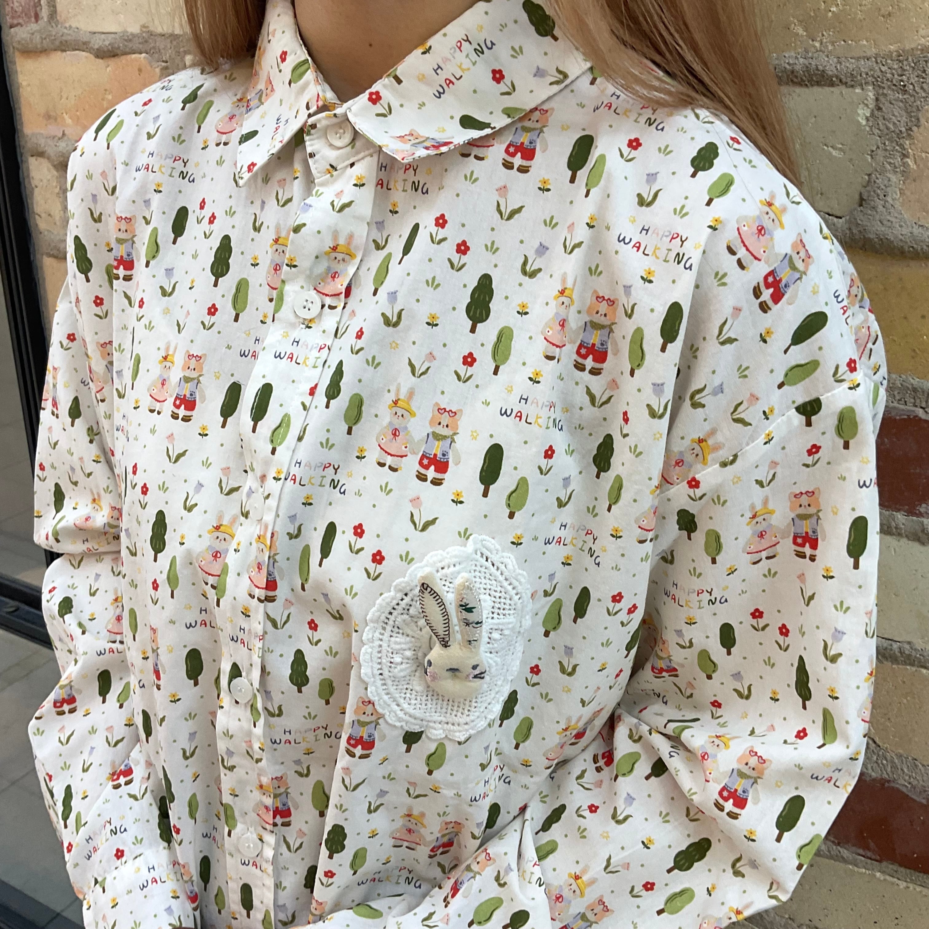 ほんわかしたイラストがかわいい柄シャツ⎛˶'ᵕ'˶ ⎞❤︎