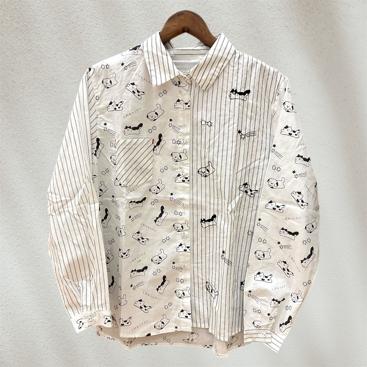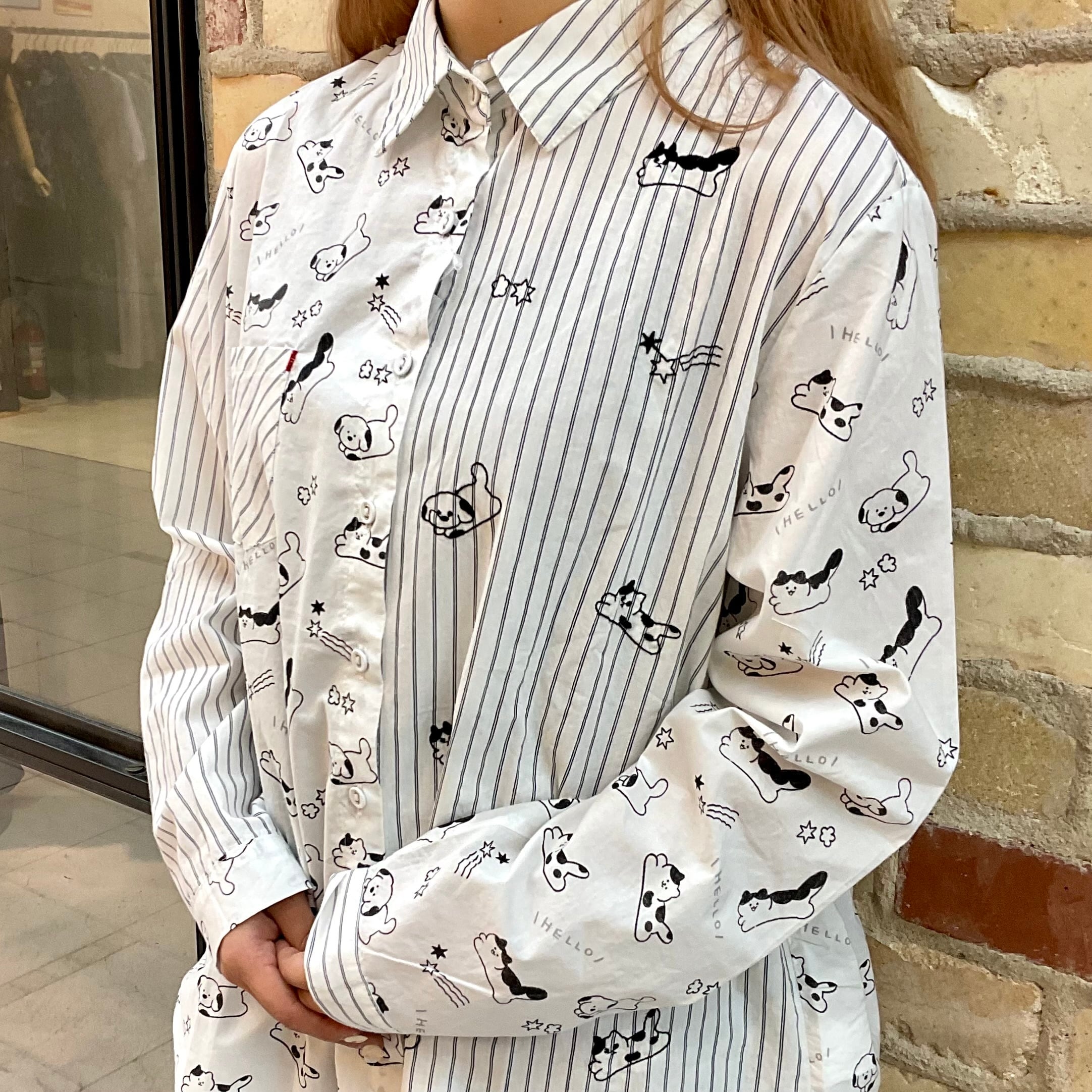 :いぬねこ×ストライプ柄シャツ(WCS-1673)