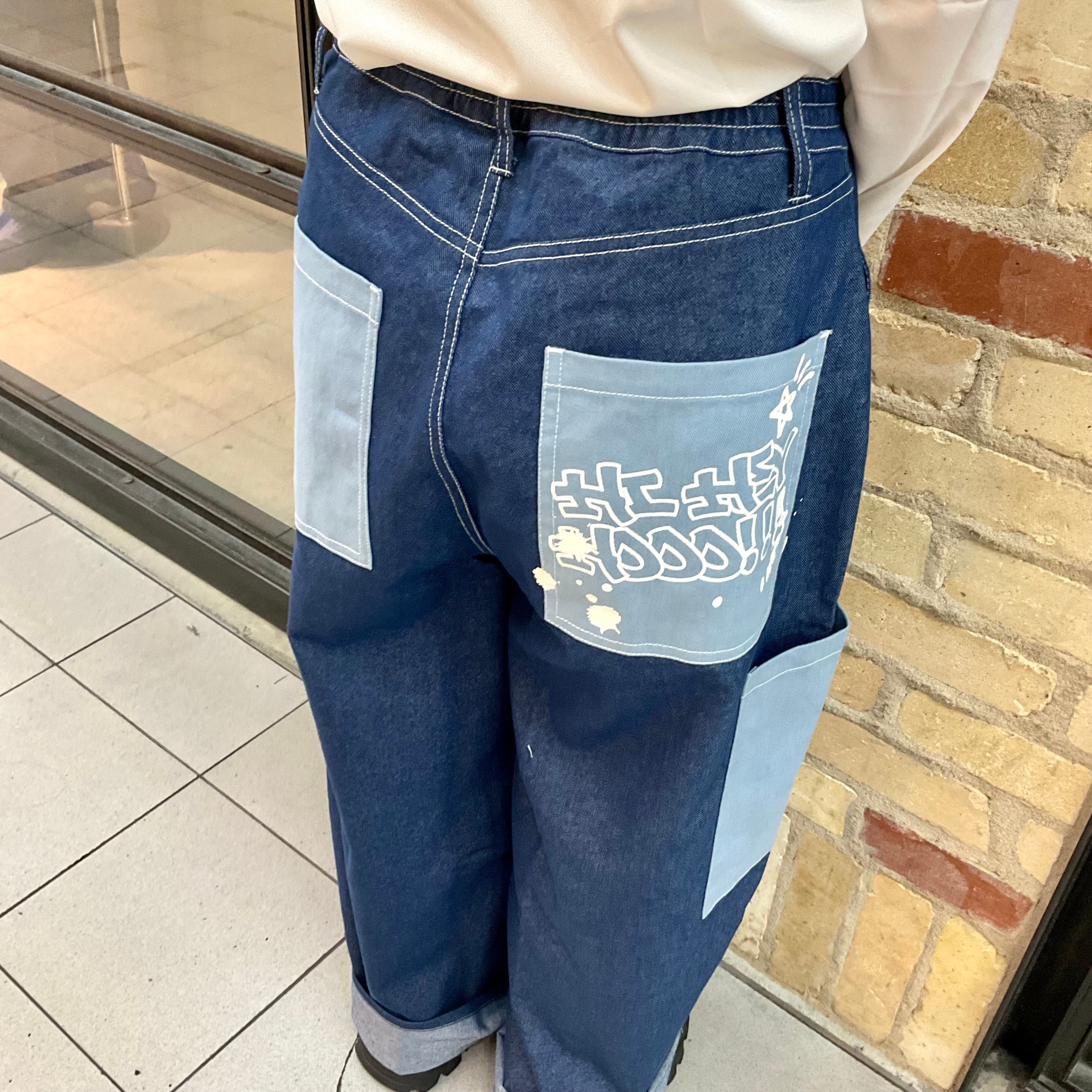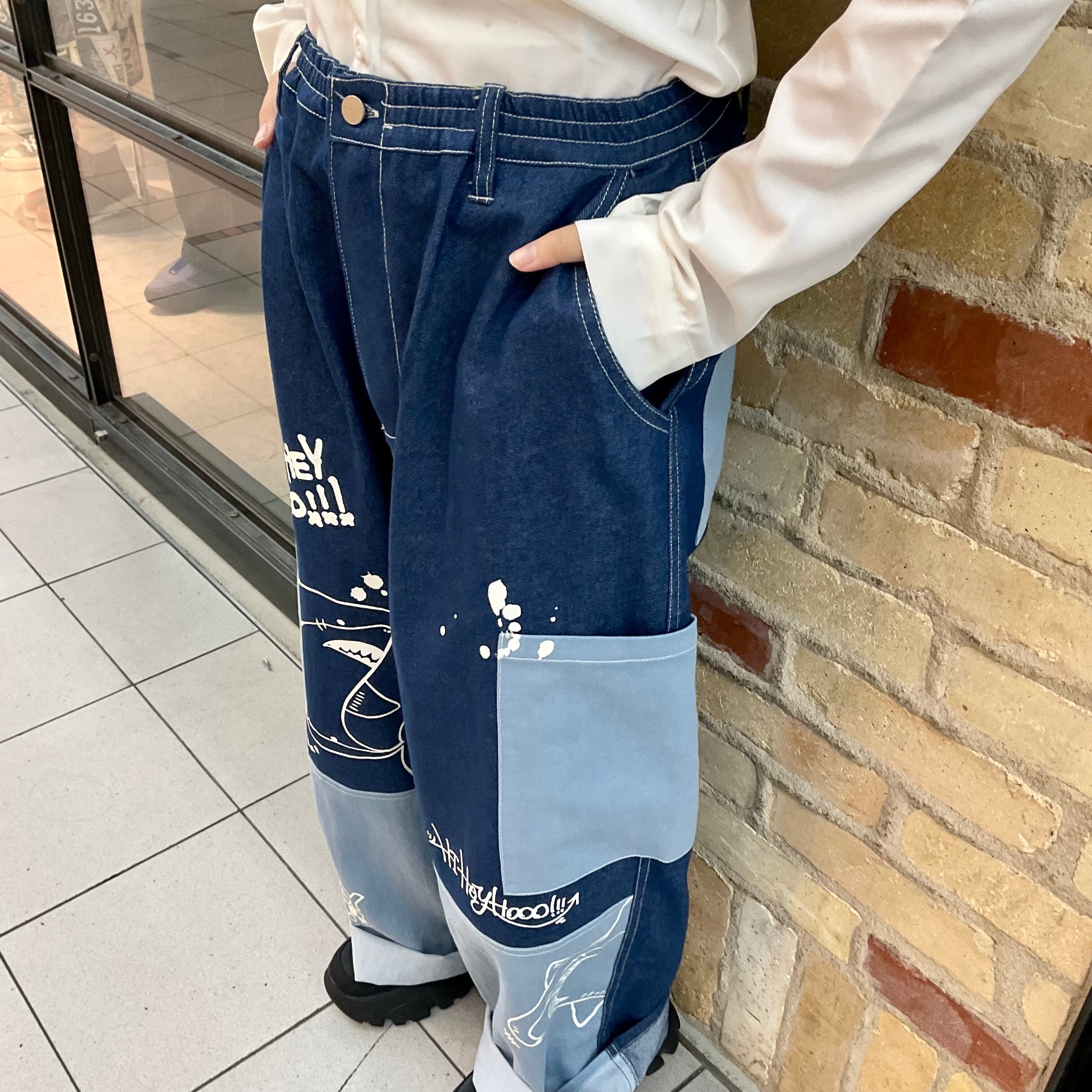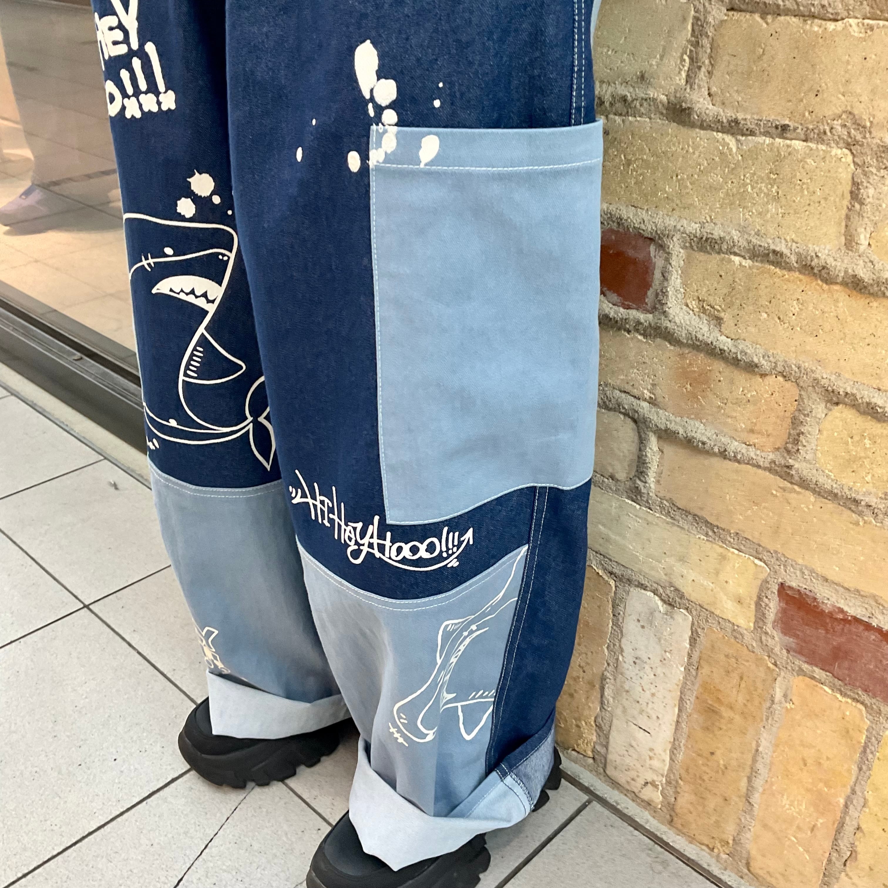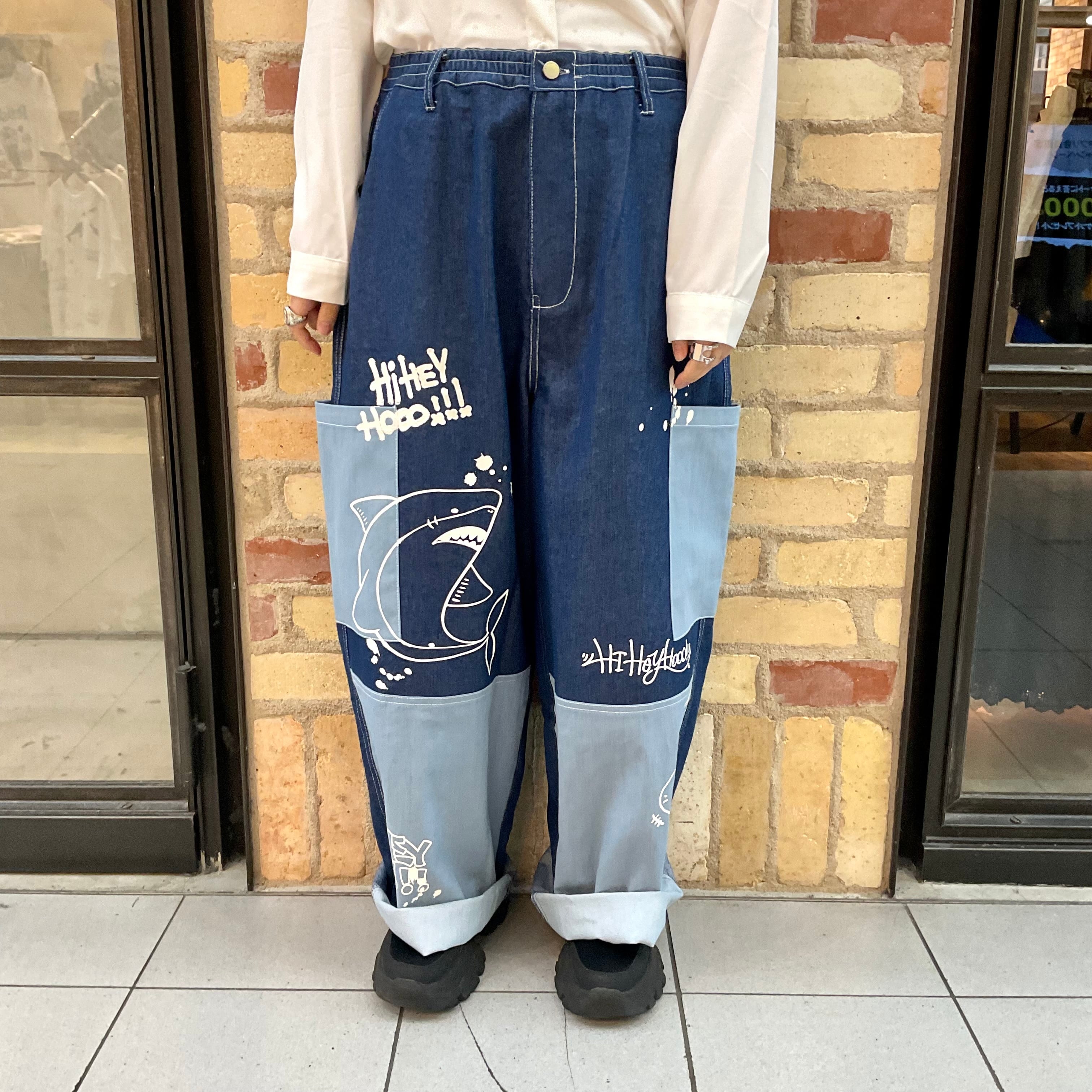 :【Hi Hey Hooo!!!】配色デニムサメカーゴパンツ(H4250247)
