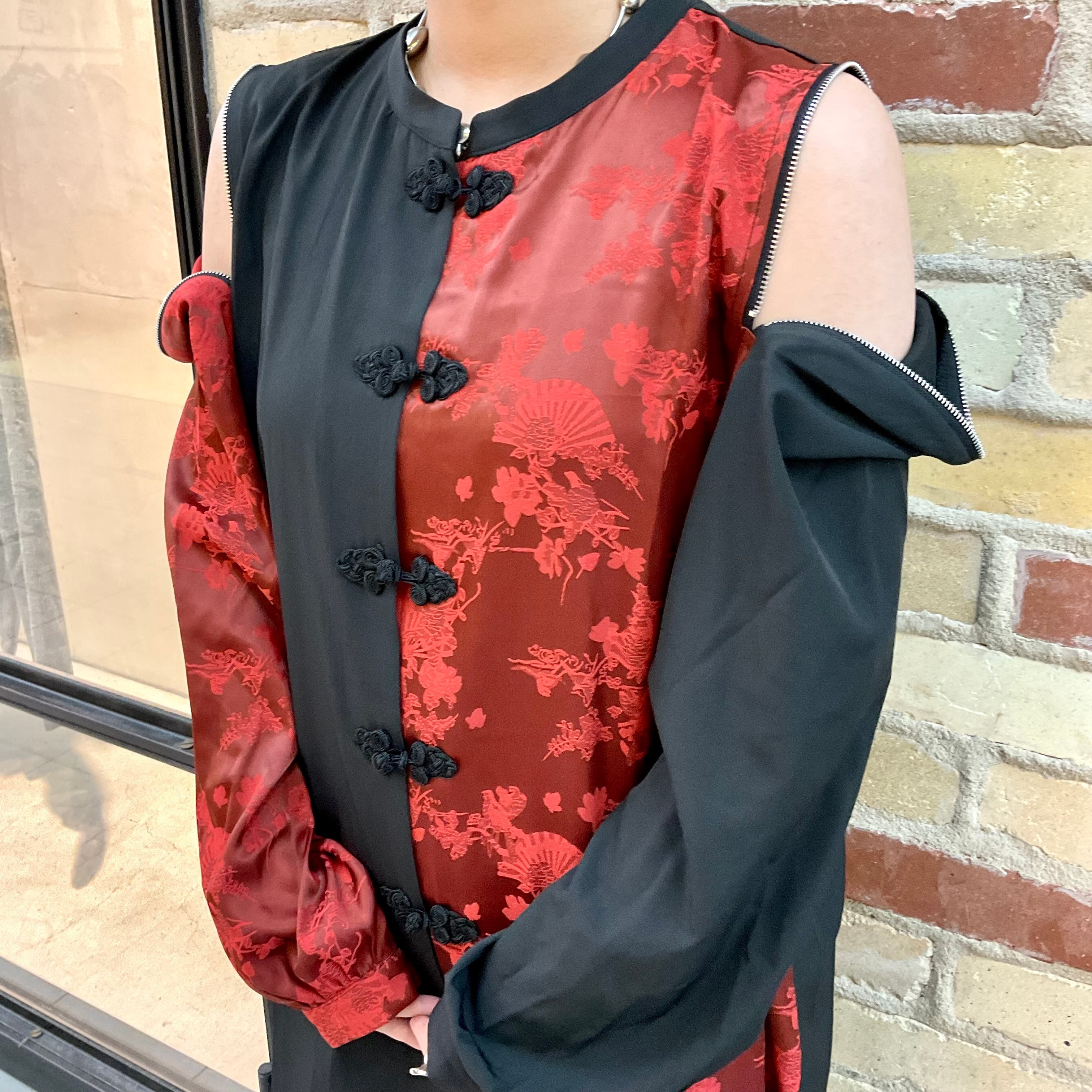 :肩ジップ付チャイナ釦ブラウス(39902)