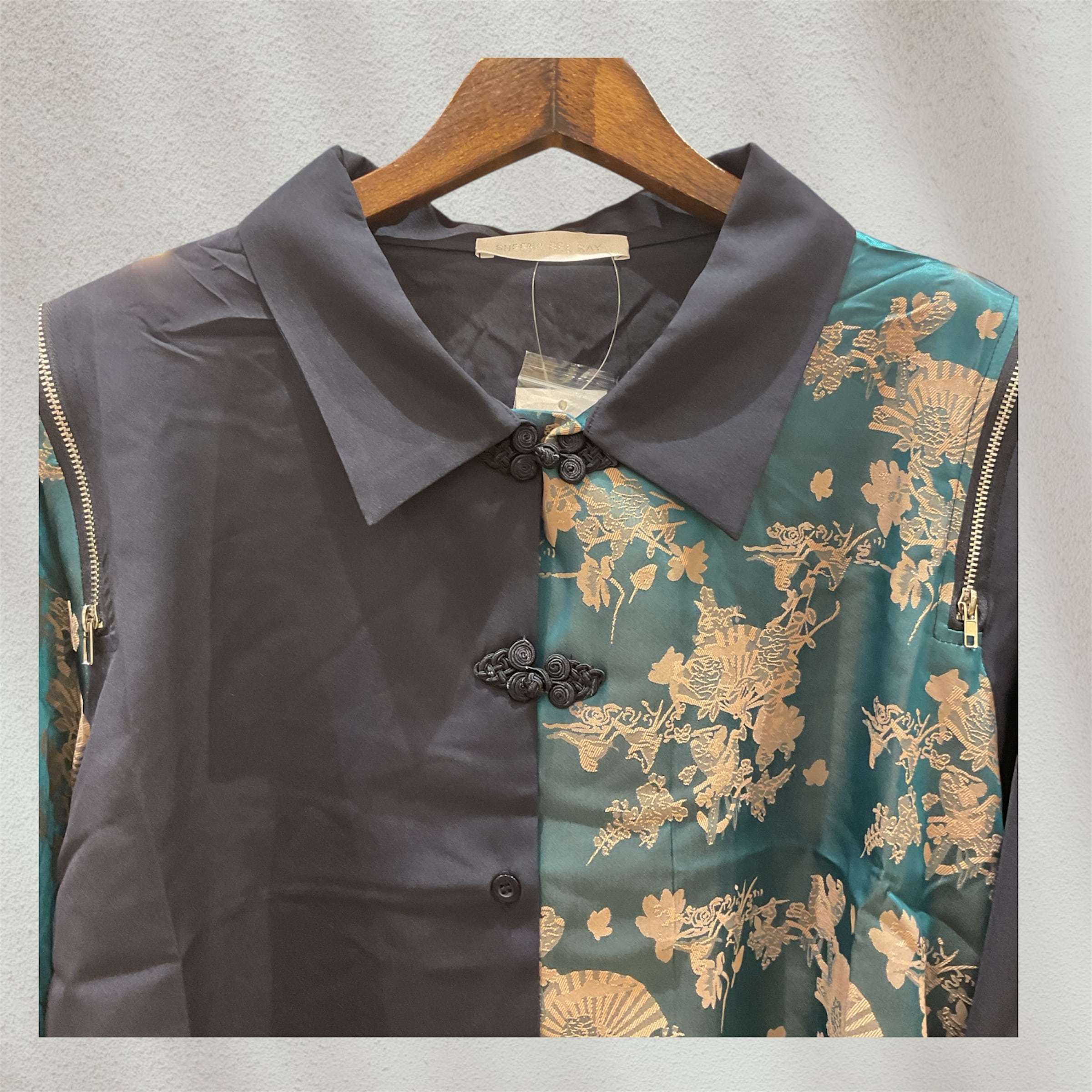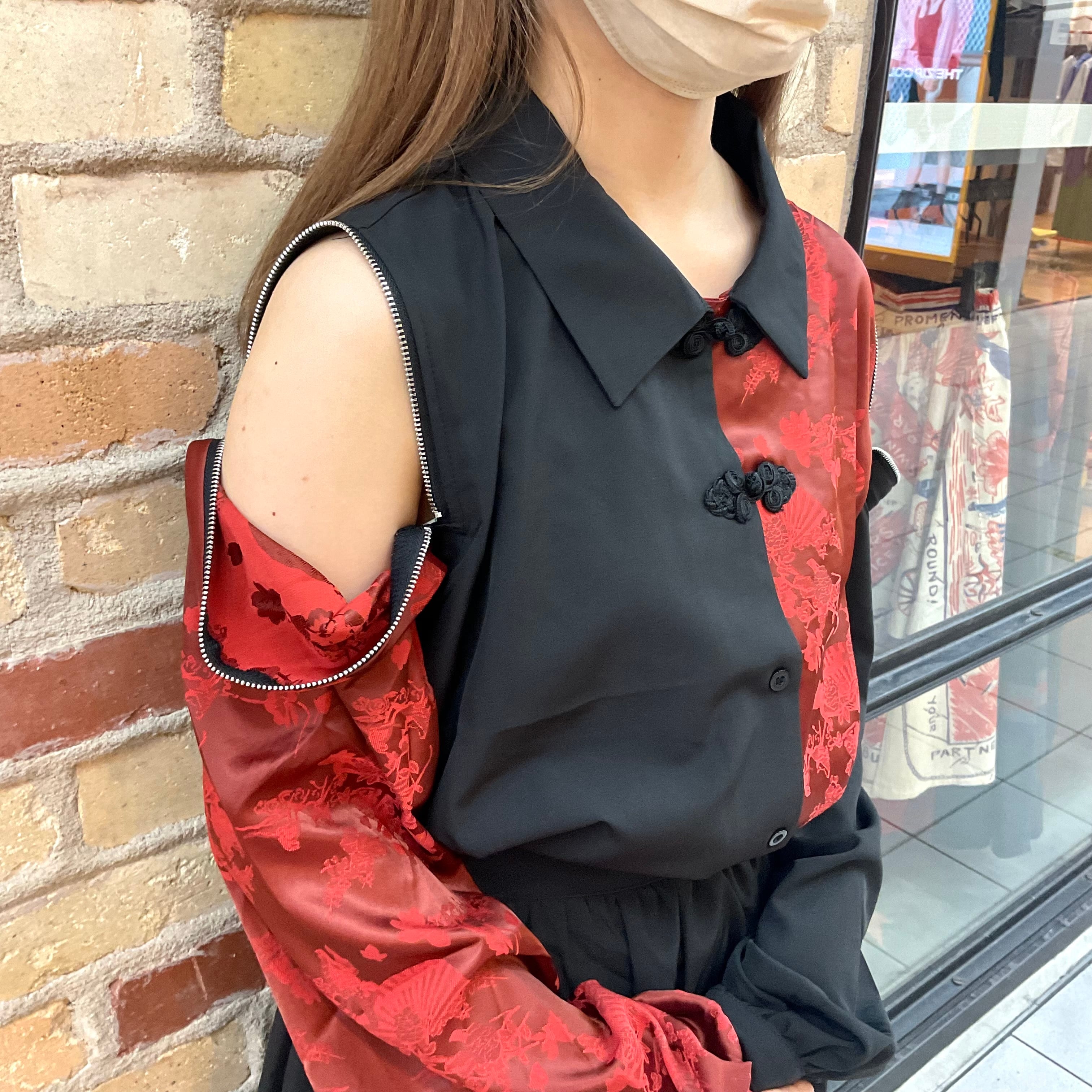 :肩ジップ付きチャイナ釦短丈シャツ(39901)