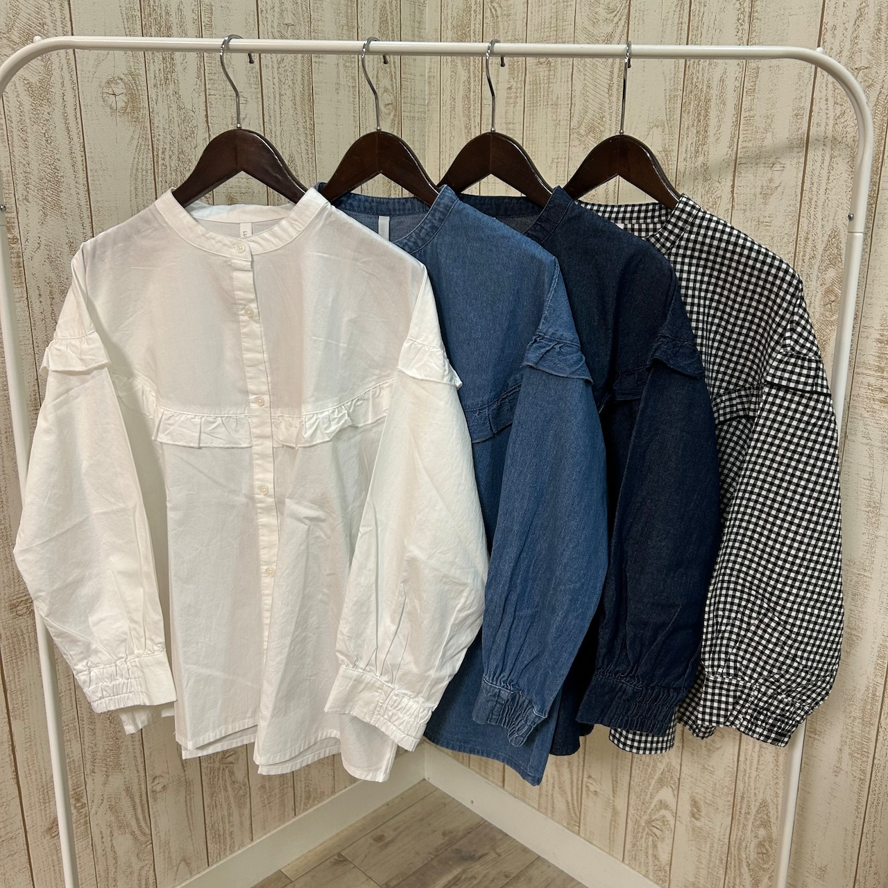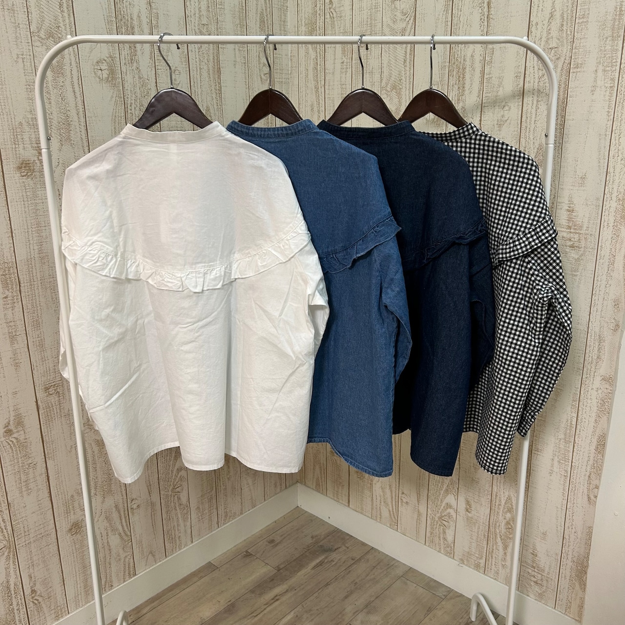 前後にかけたヨーク切替のさり気ないフリルデザインが目を惹きます❤︎