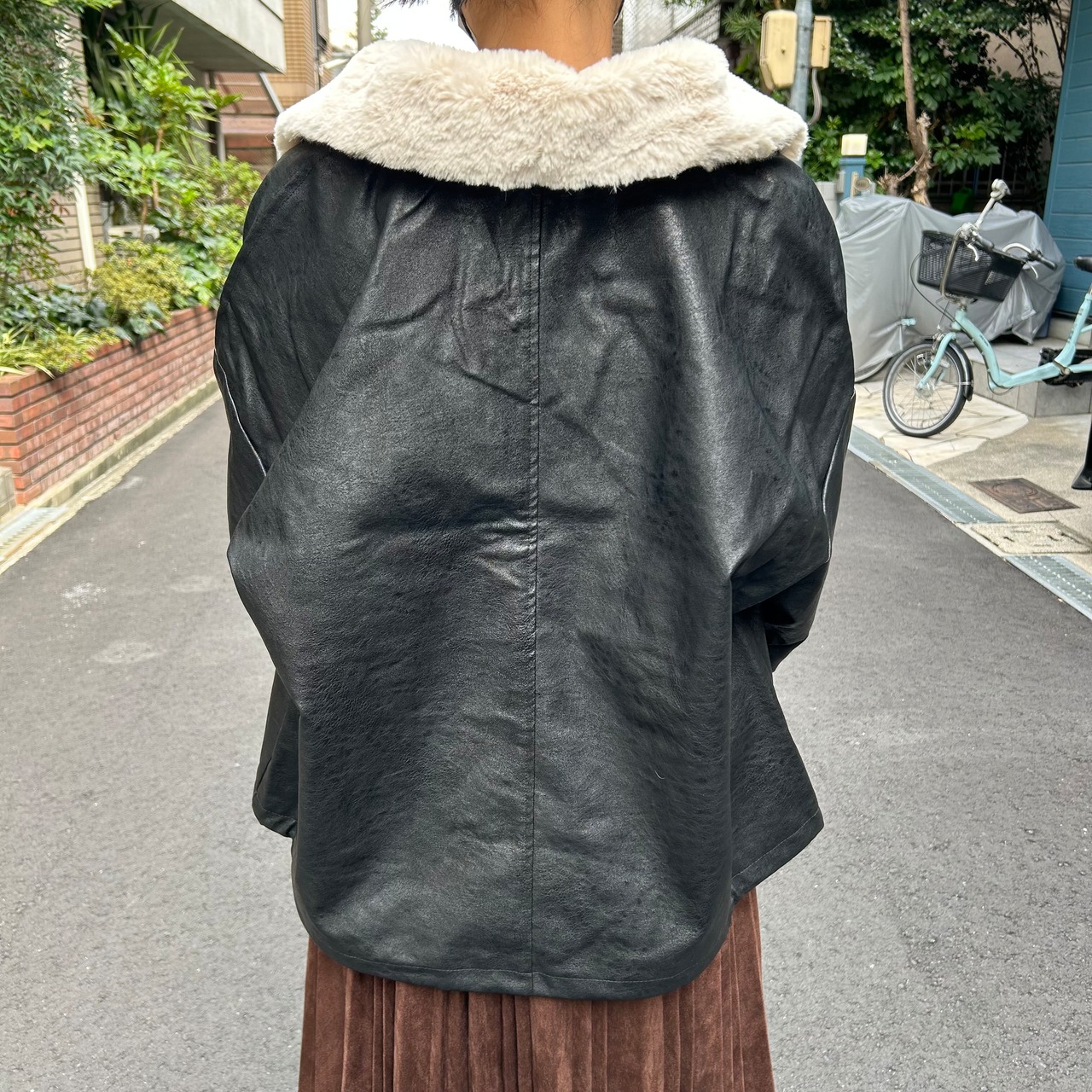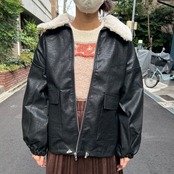 :ファー衿付きフェイクレザーブルゾン(246408)