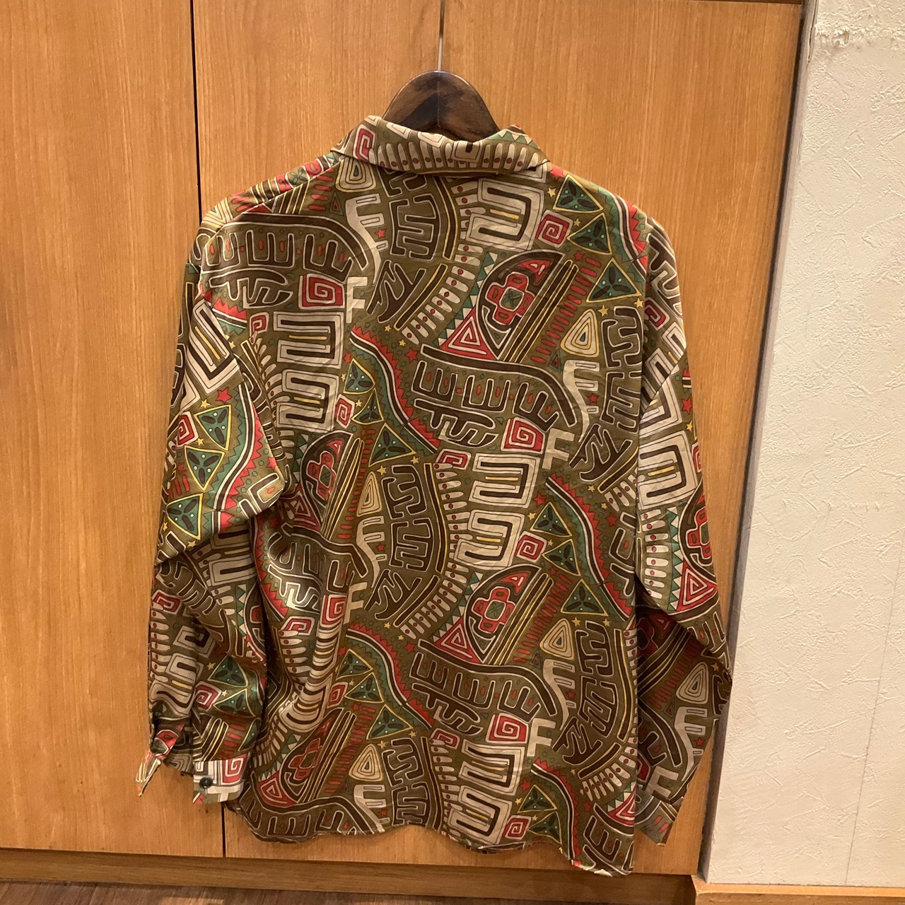 【古着】ツヤ配色幾何学柄シャツ(20251112-6)