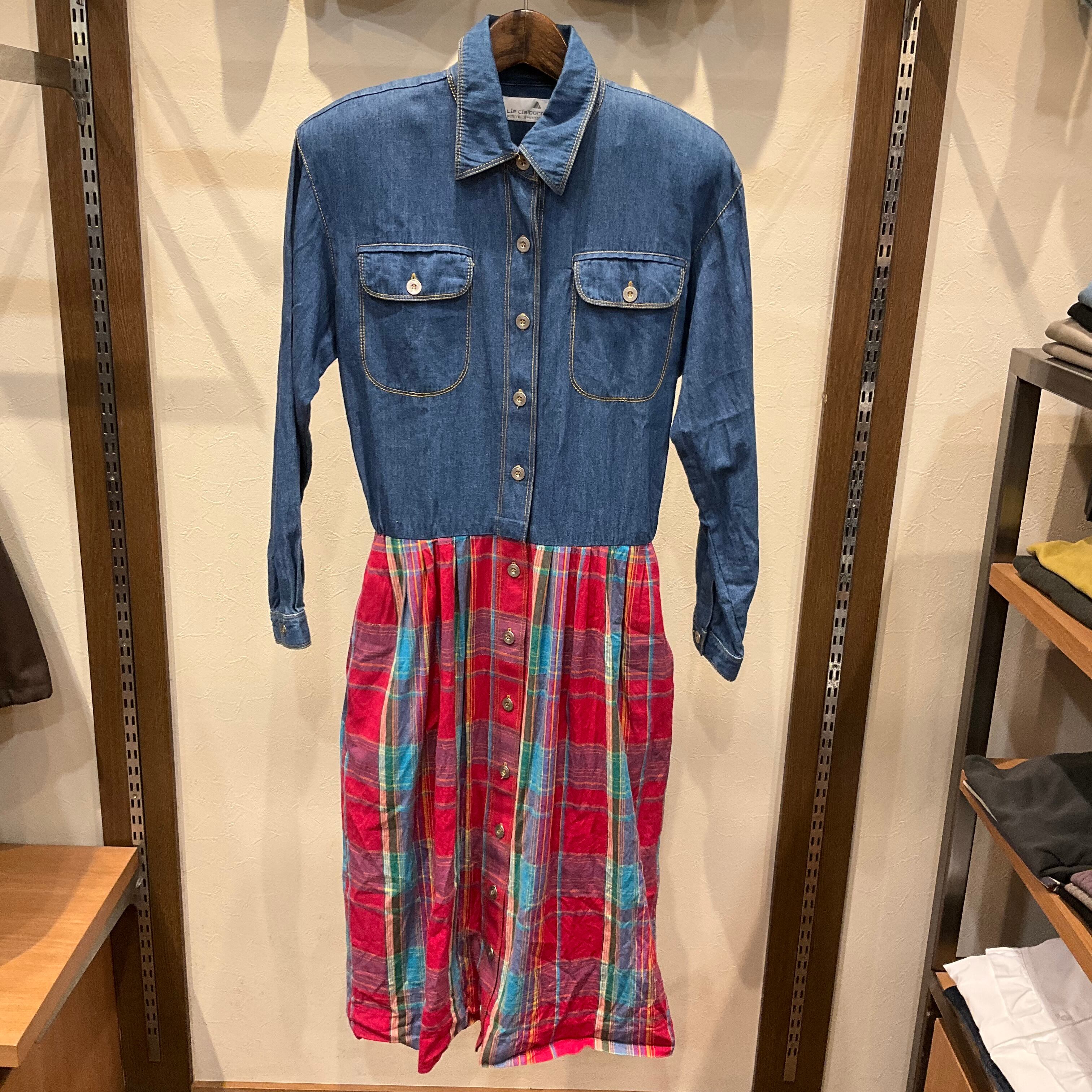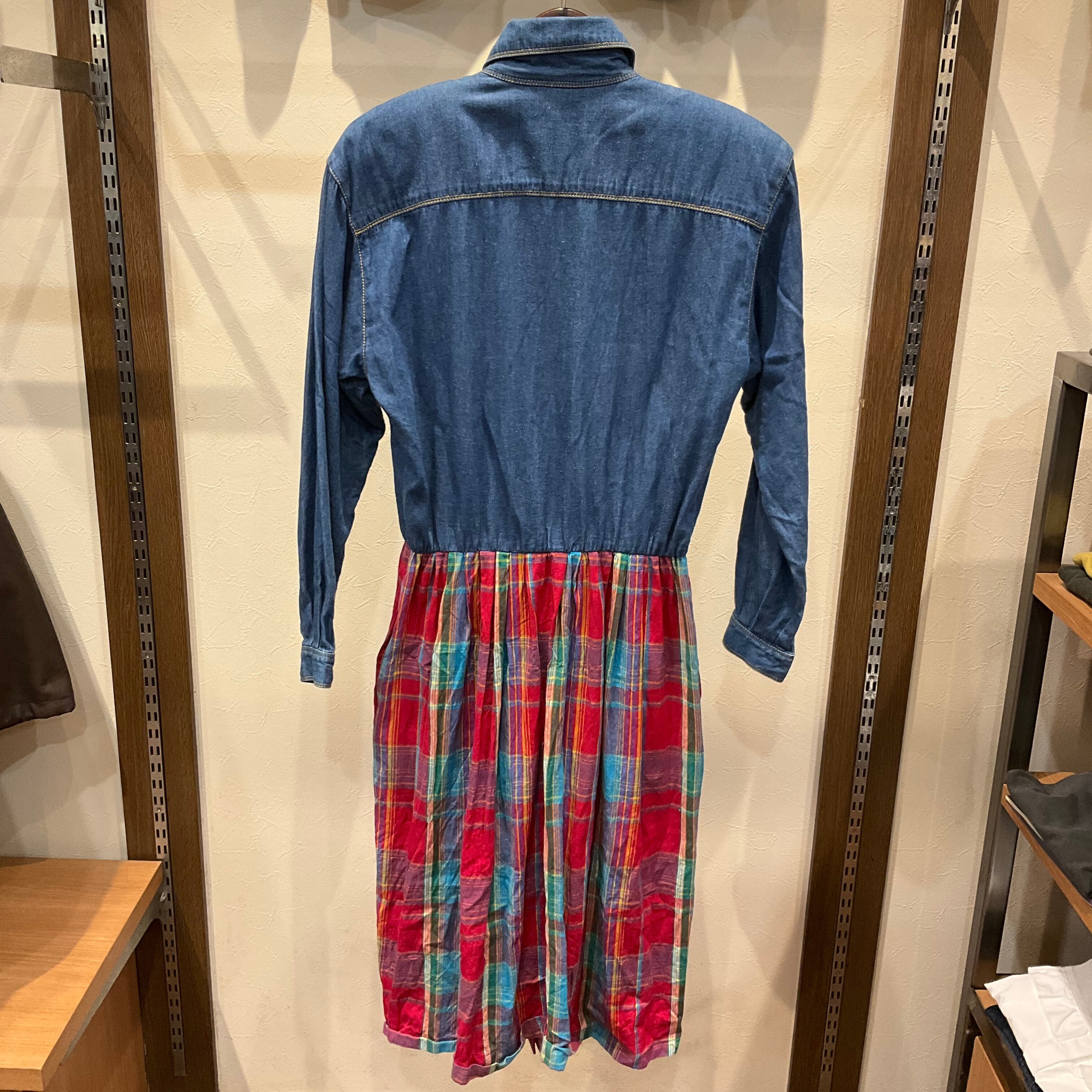 【古着】デニムチェック切替ワンピース(20251112-10)