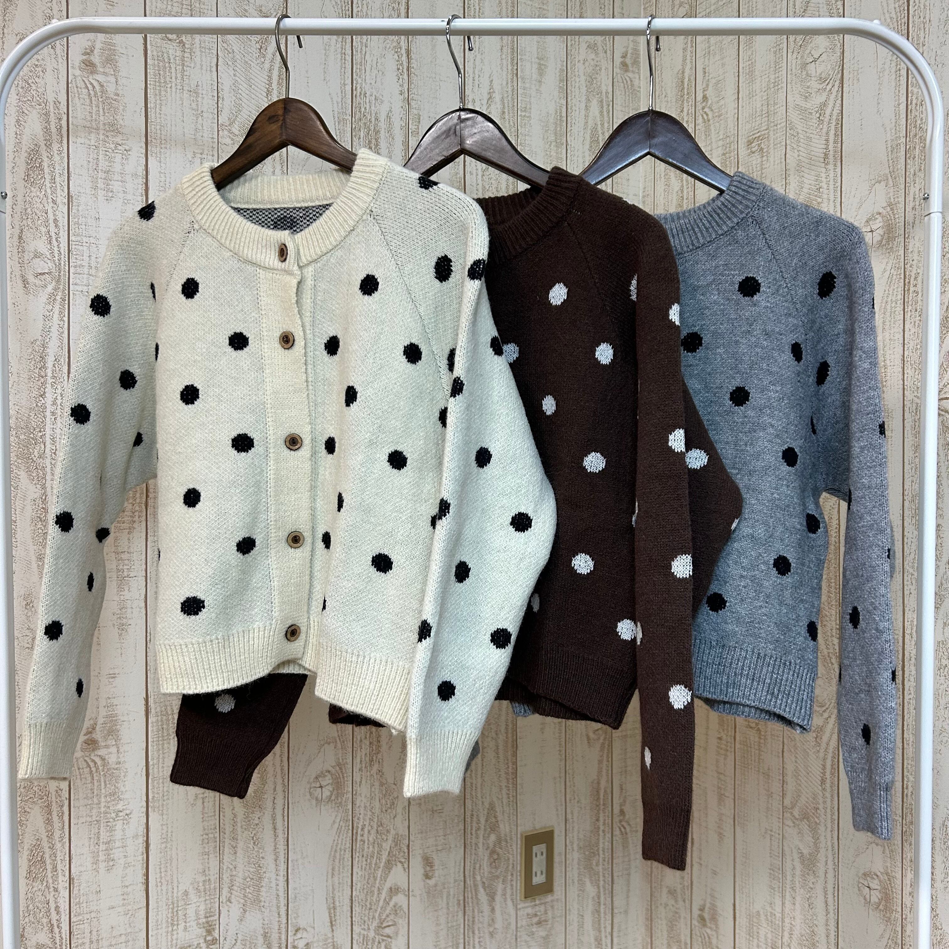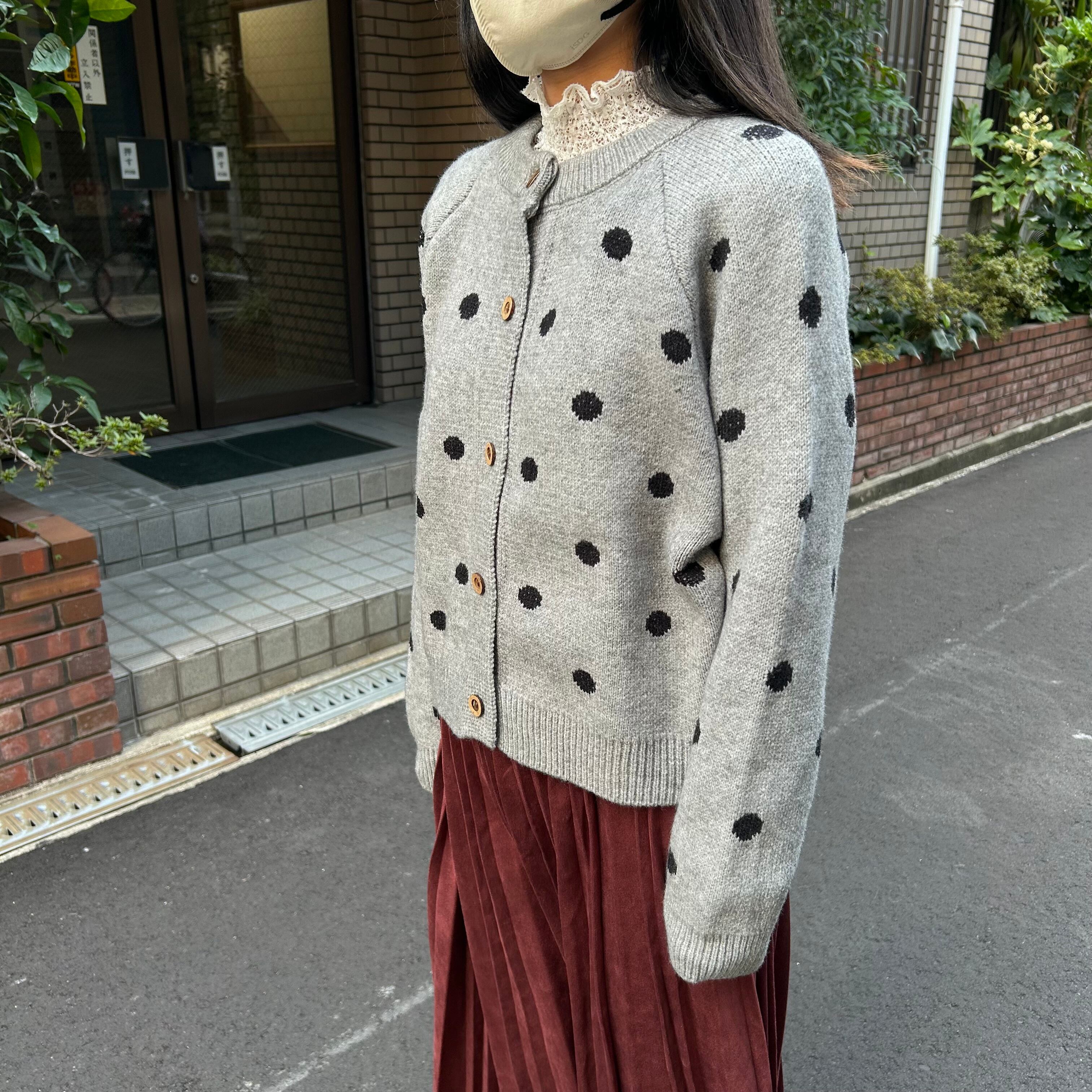 ドット柄に木のボタンが古着風でとても可愛いです。丈は少し短めでスッキリしています。