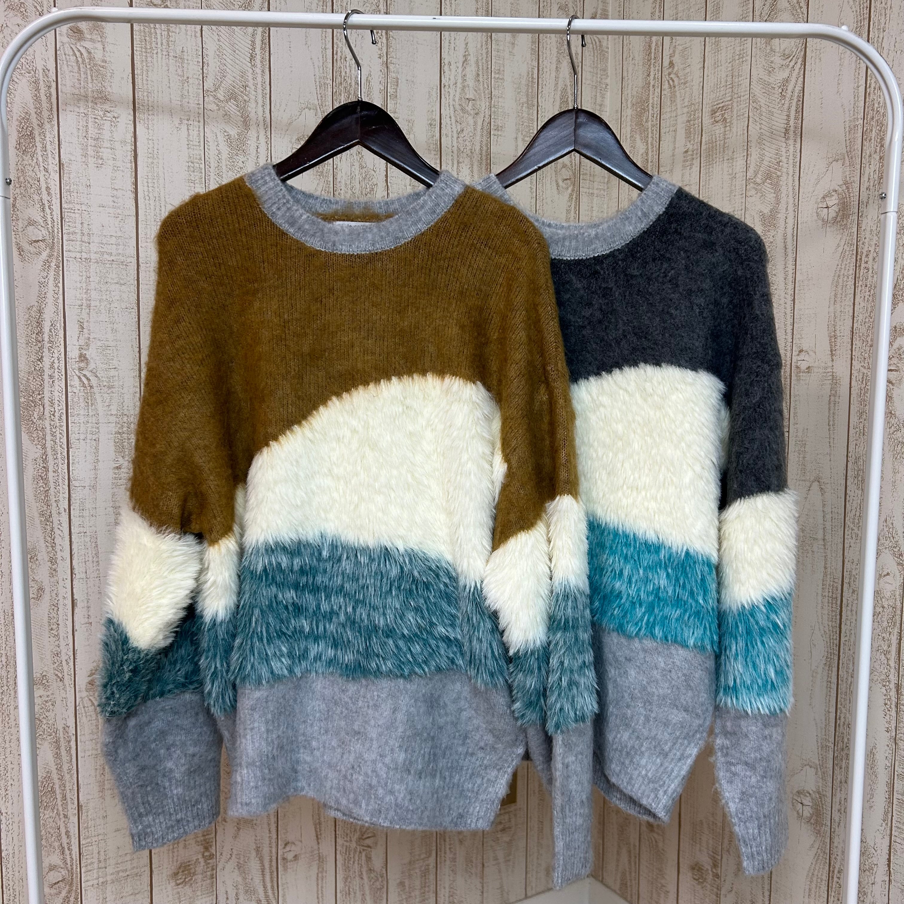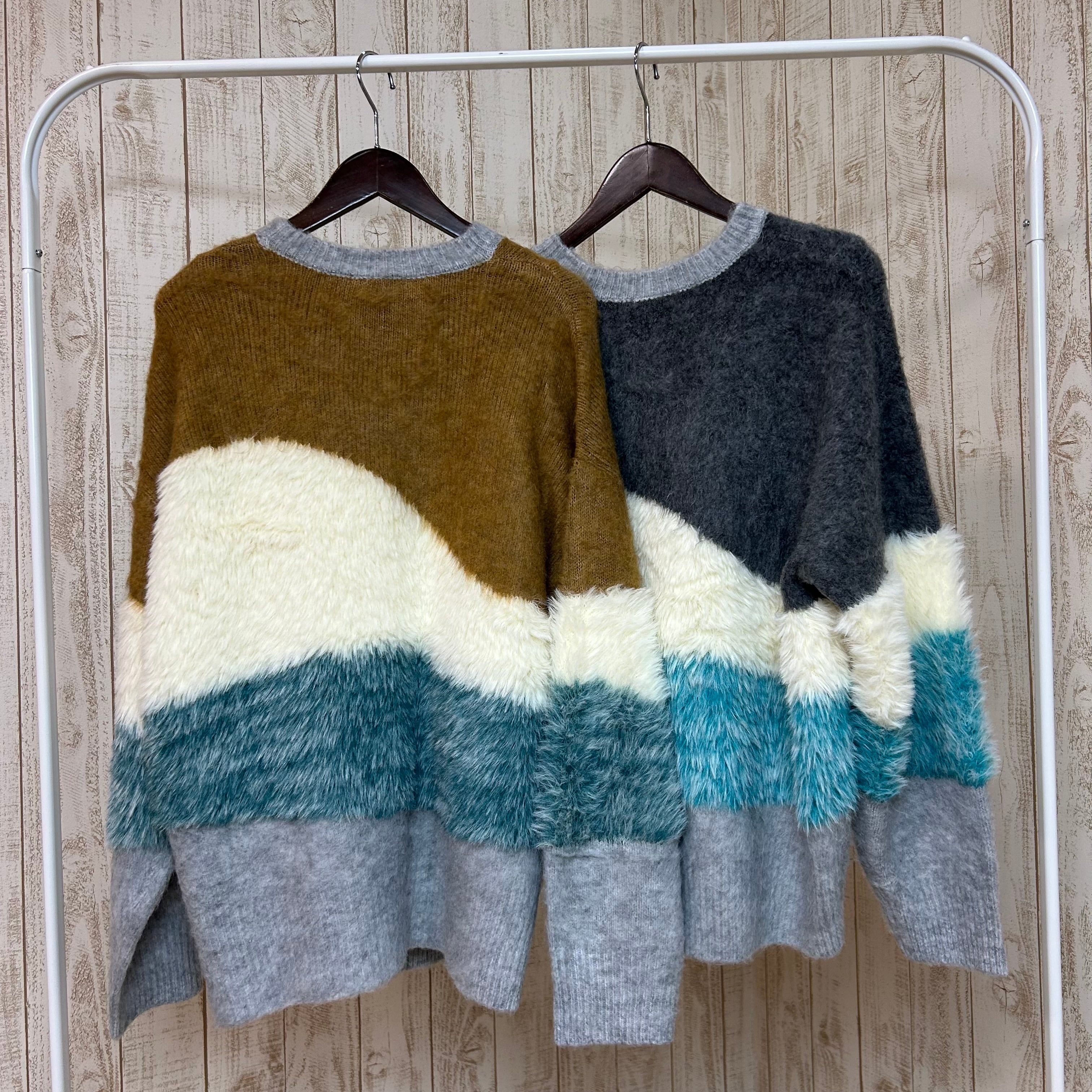 目を惹くマーブル柄でふわふわな手触りのニット❤︎
