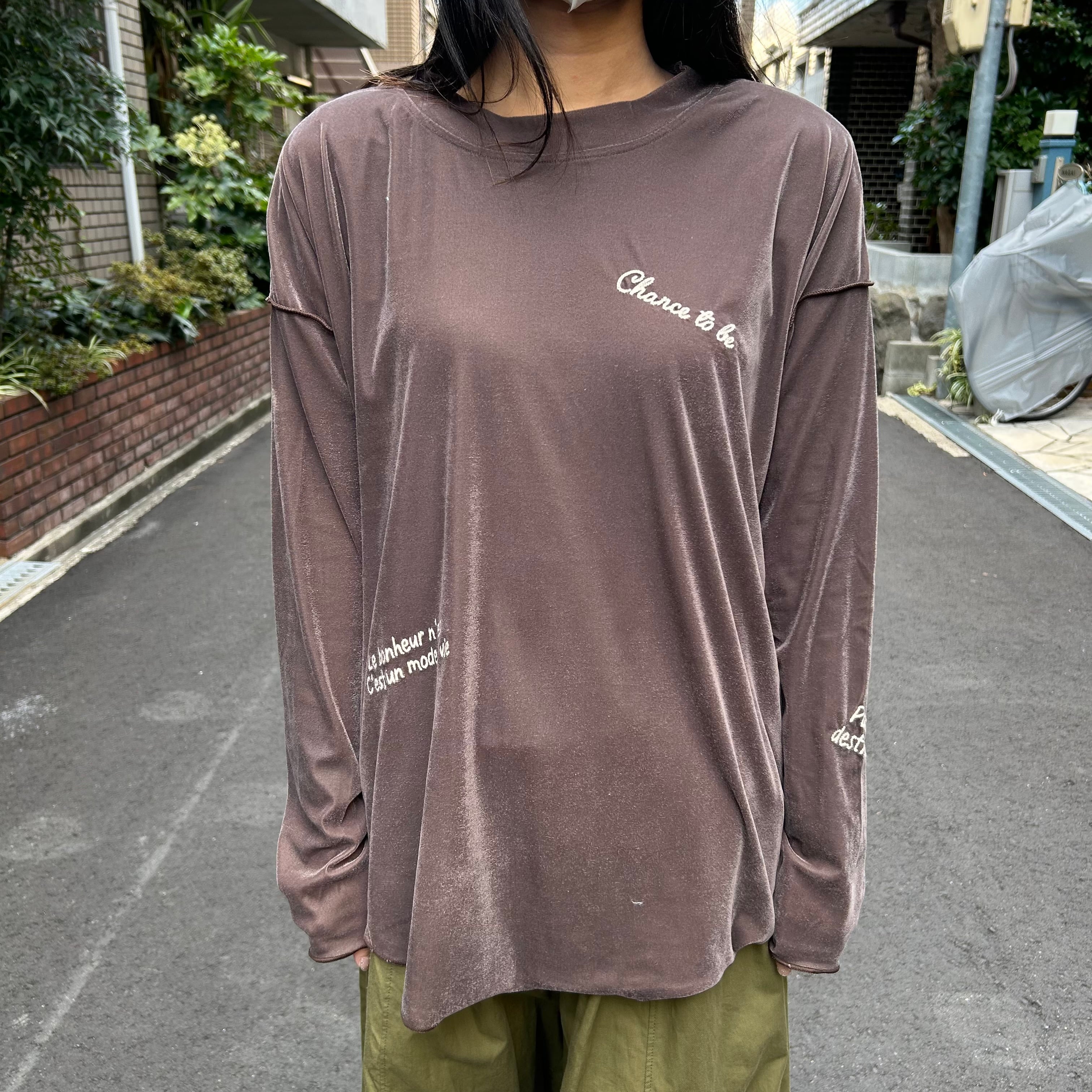 柔らかく滑らかな肌触りのベロア生地にランダムロゴを散りばめた長袖Tシャツ・:*