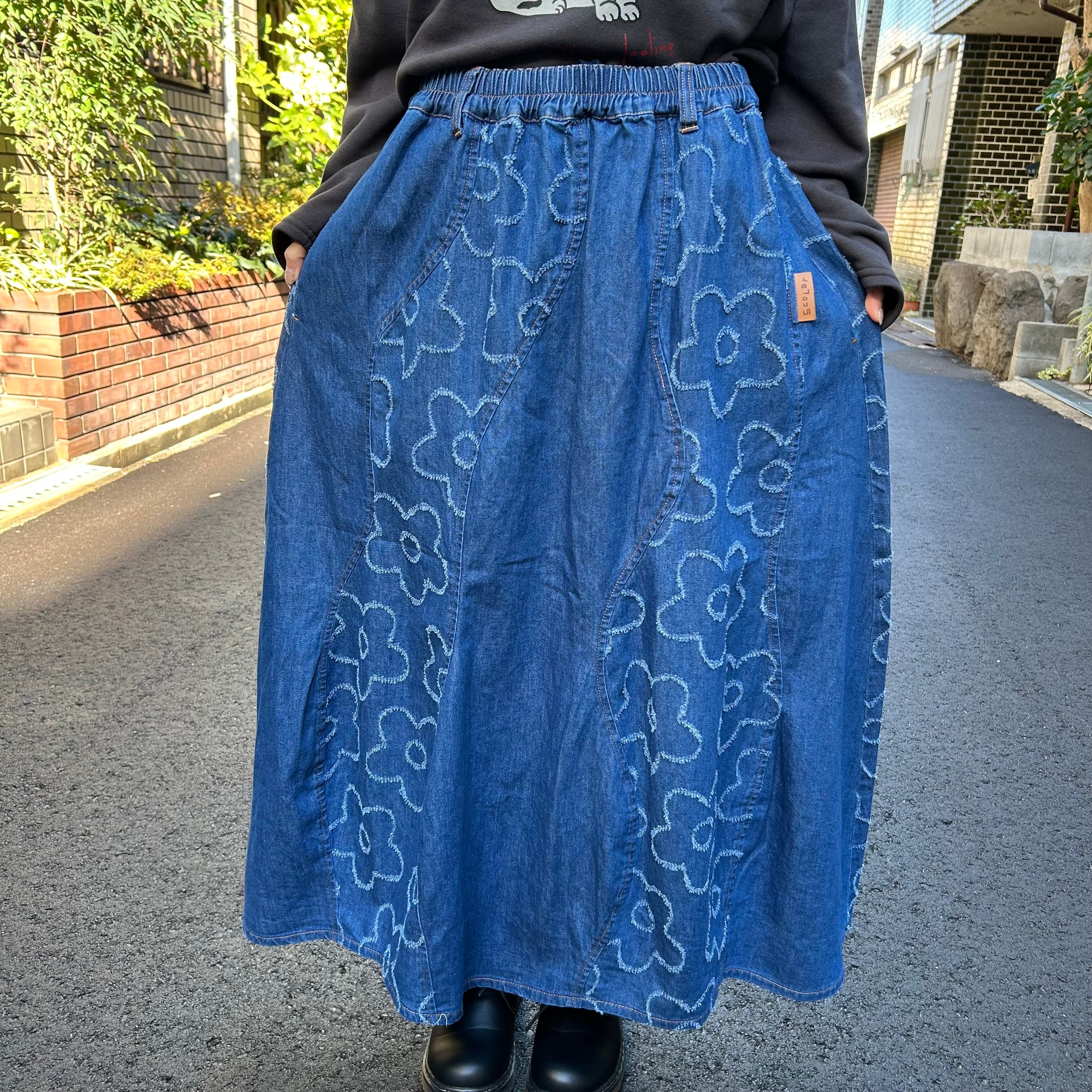 :【ScoLar】お花ジャガードデニムスカート(153753)