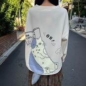 :ネコプリント+尻尾モチーフスウェット(440110)