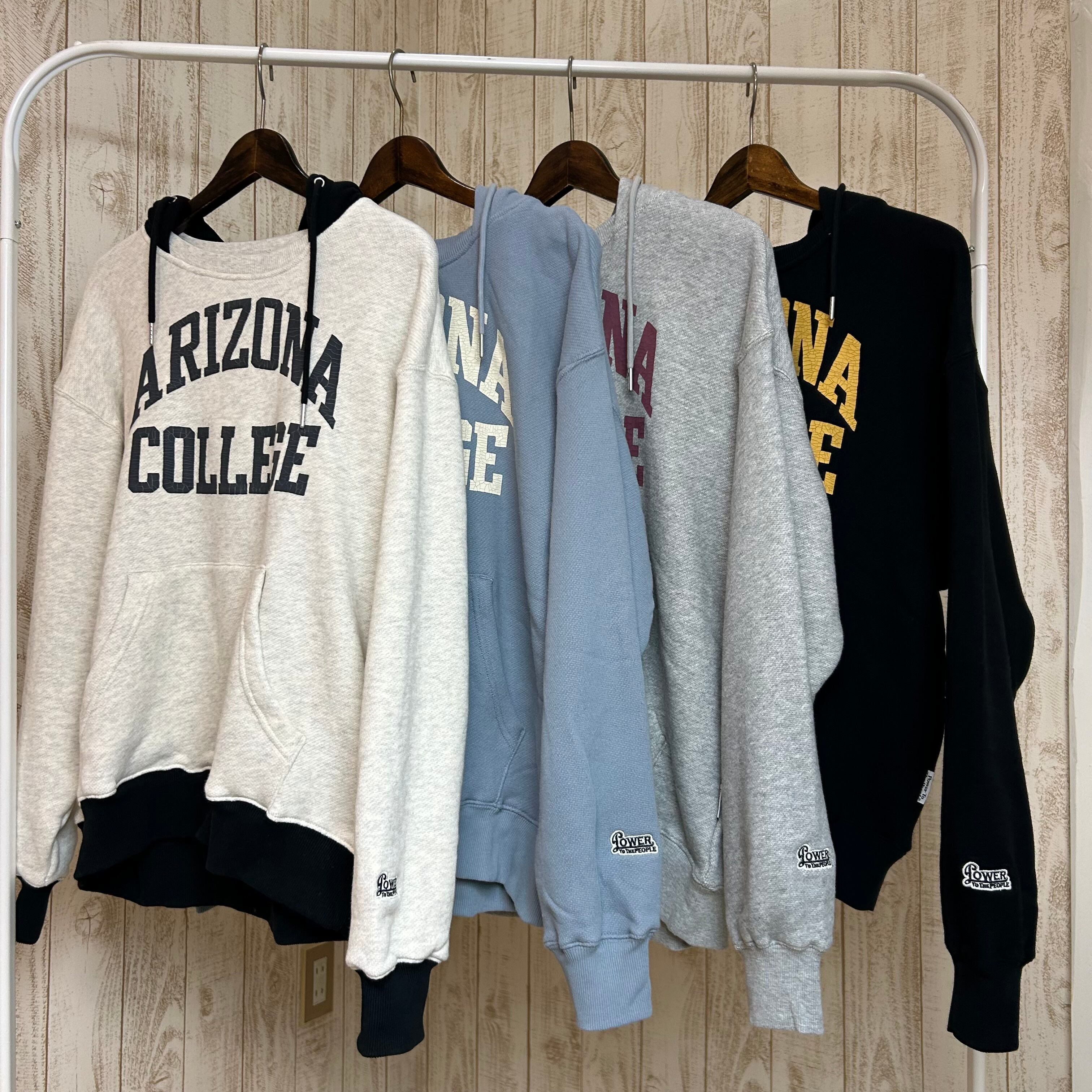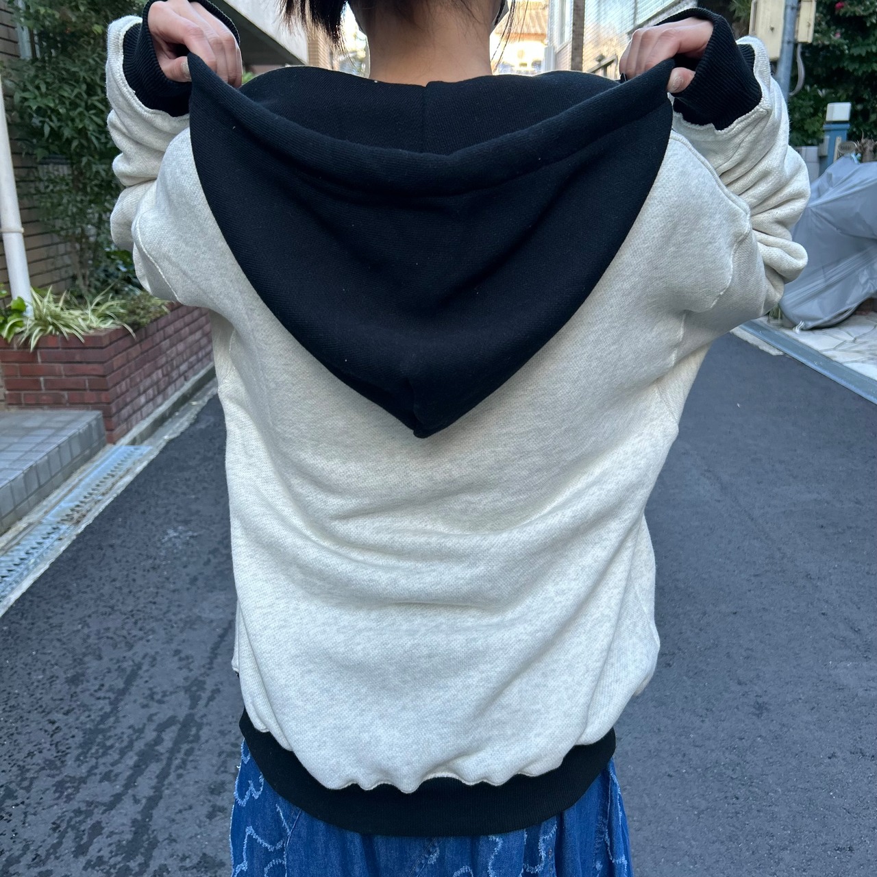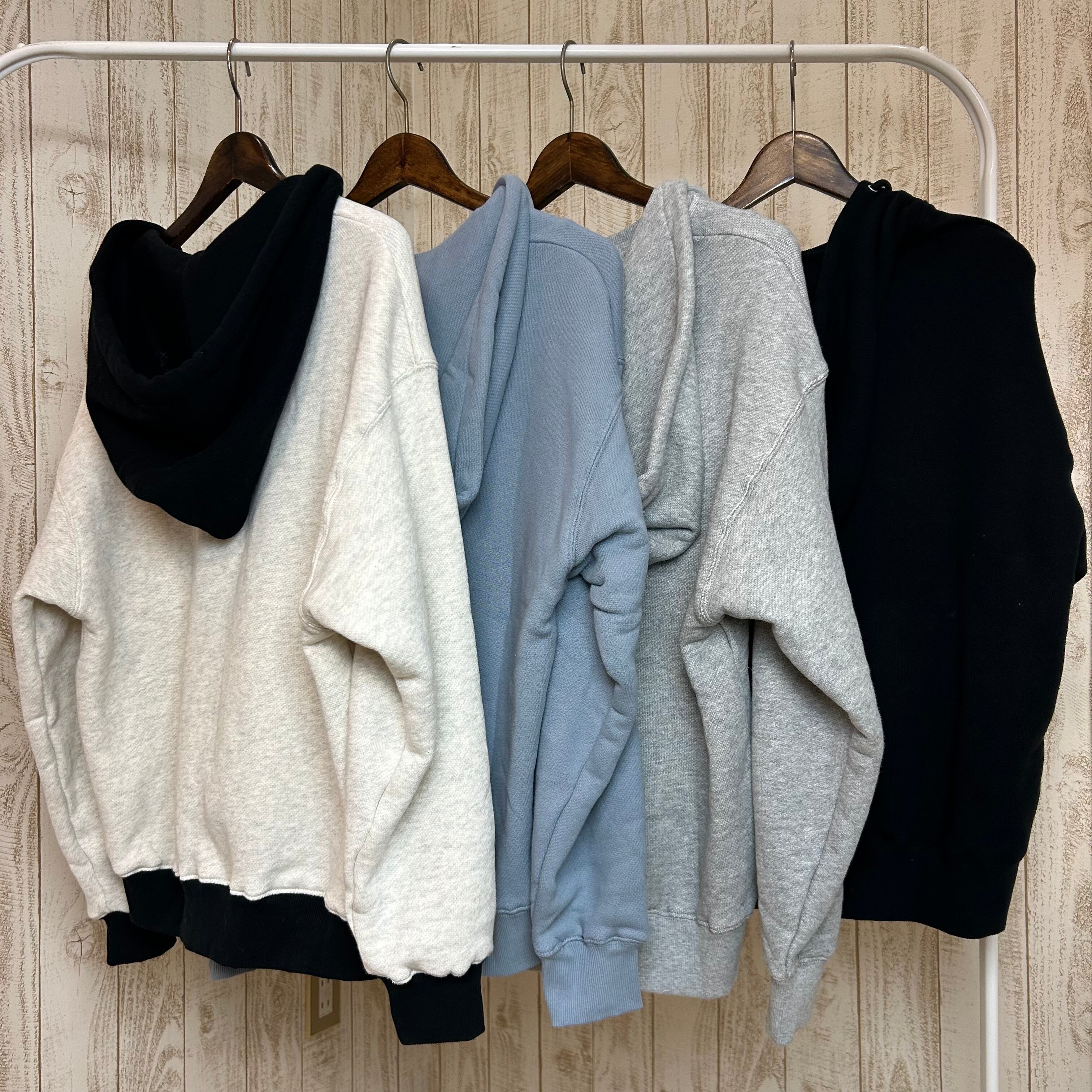 シンプルなロゴパーカーでアメカジ風の雰囲気がとても可愛いです。裏毛の厚みのあるしっかりとした素材です。大きすぎないサイズ感で着心地も抜群です。