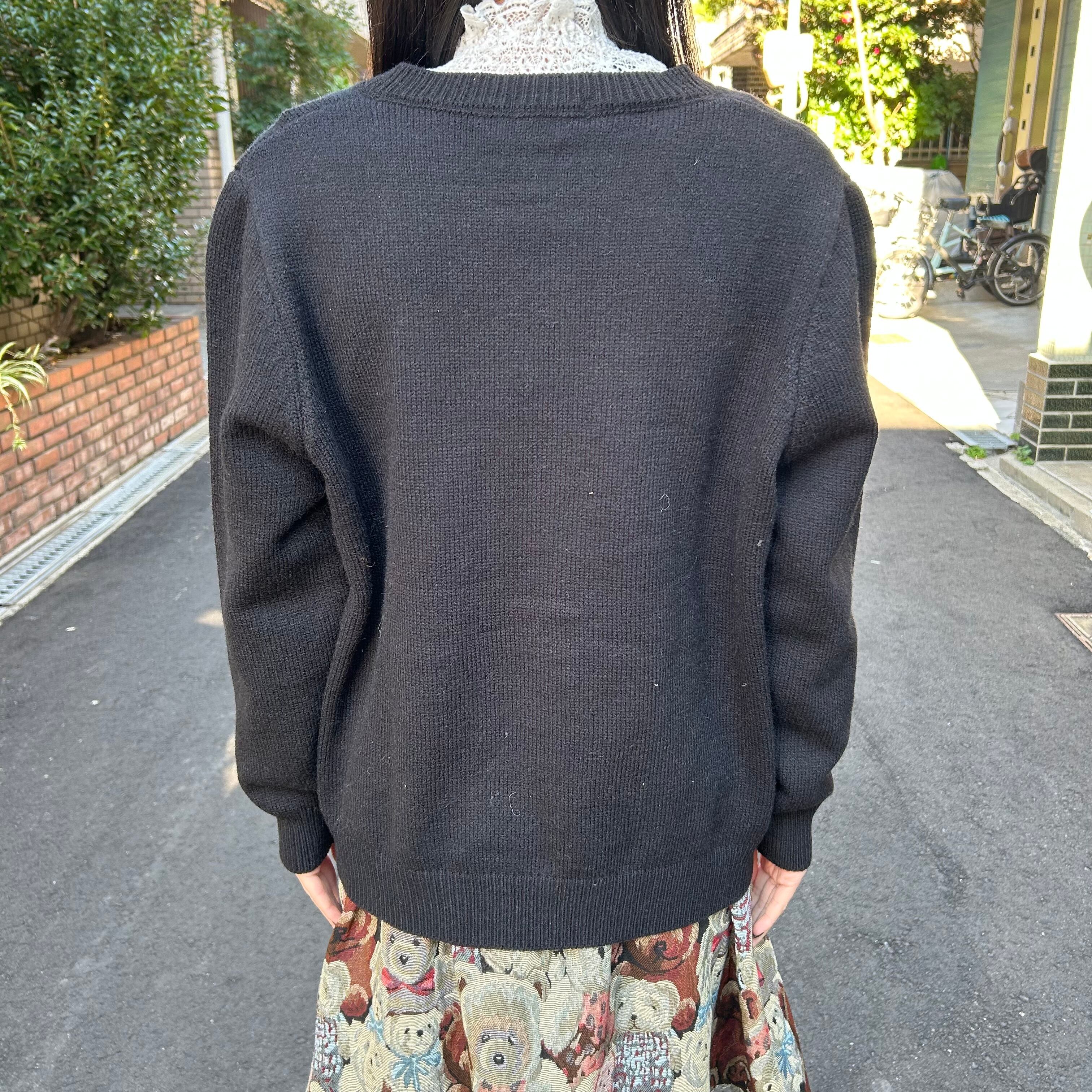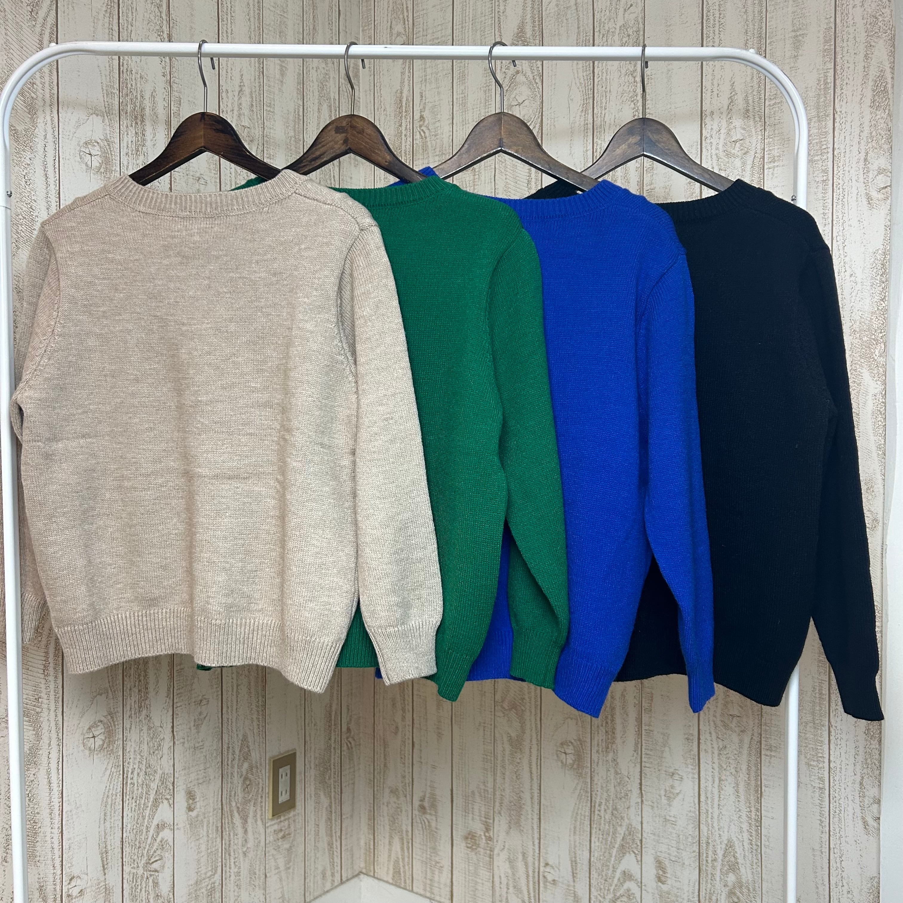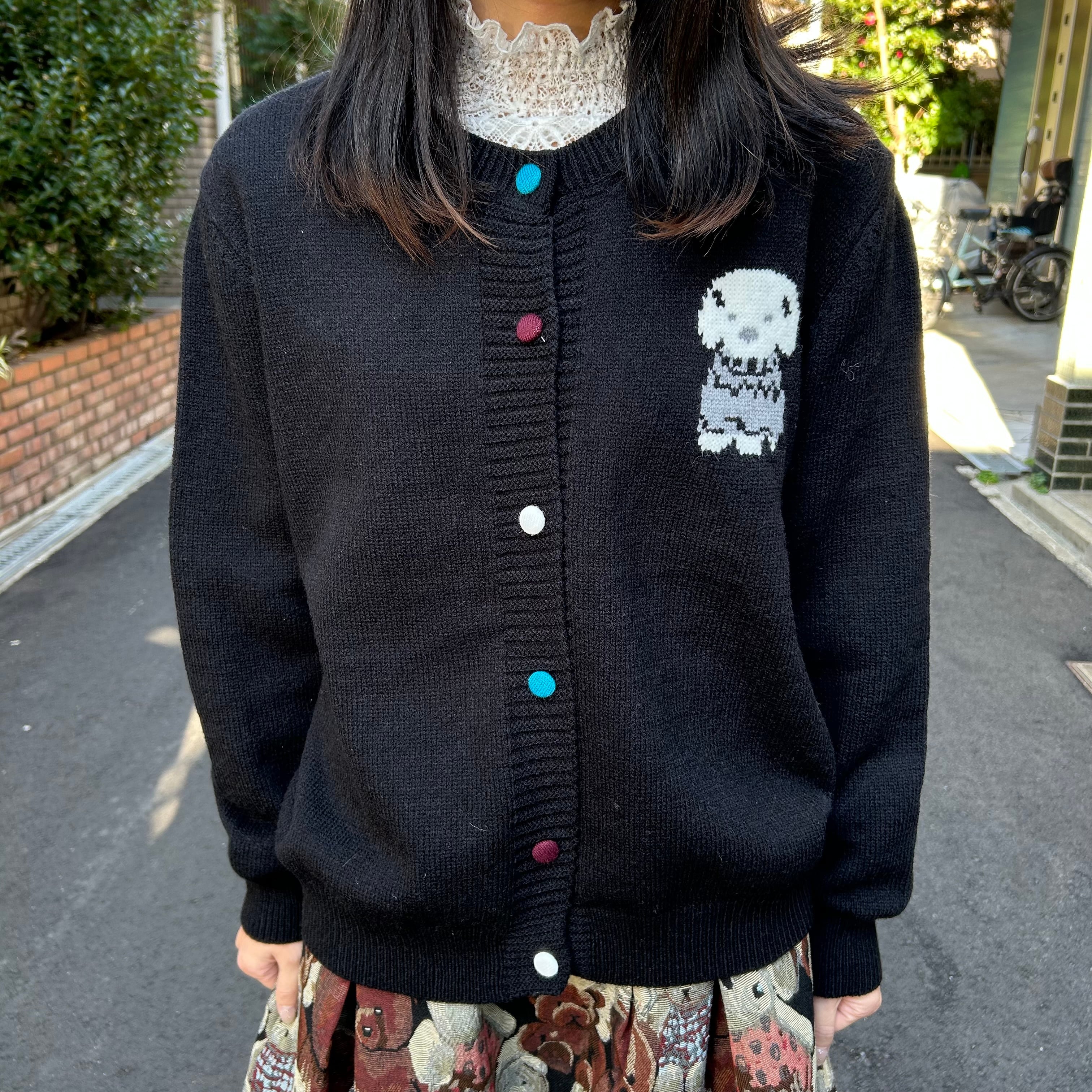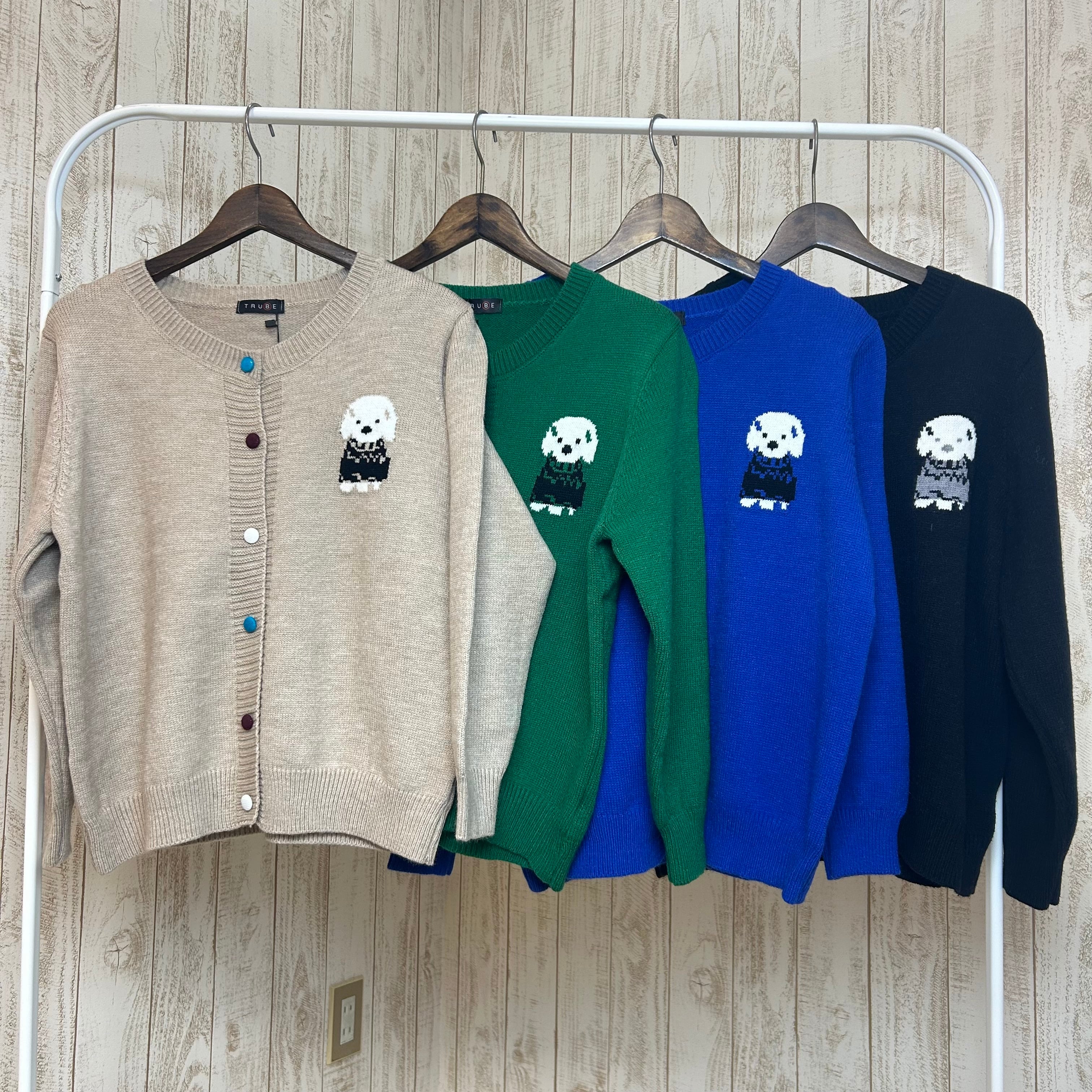 胸にワンポイントのワンちゃんとカラフルなボタンがとても可愛いです。柔らかい素材のニットで着心地も良いです。