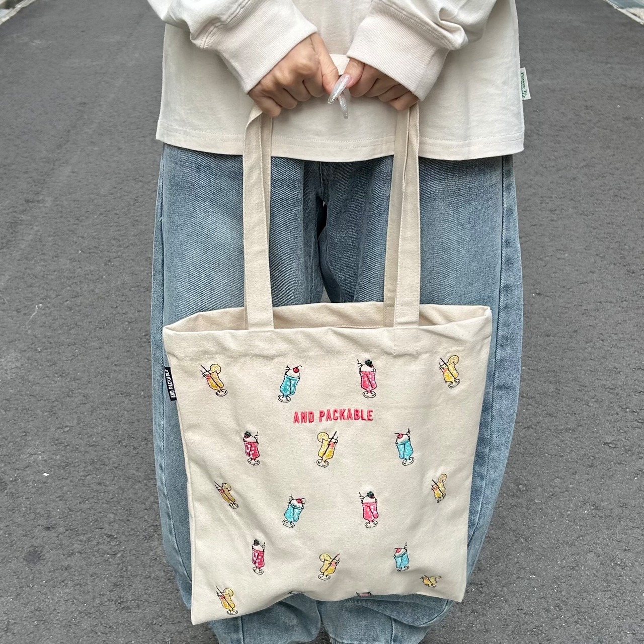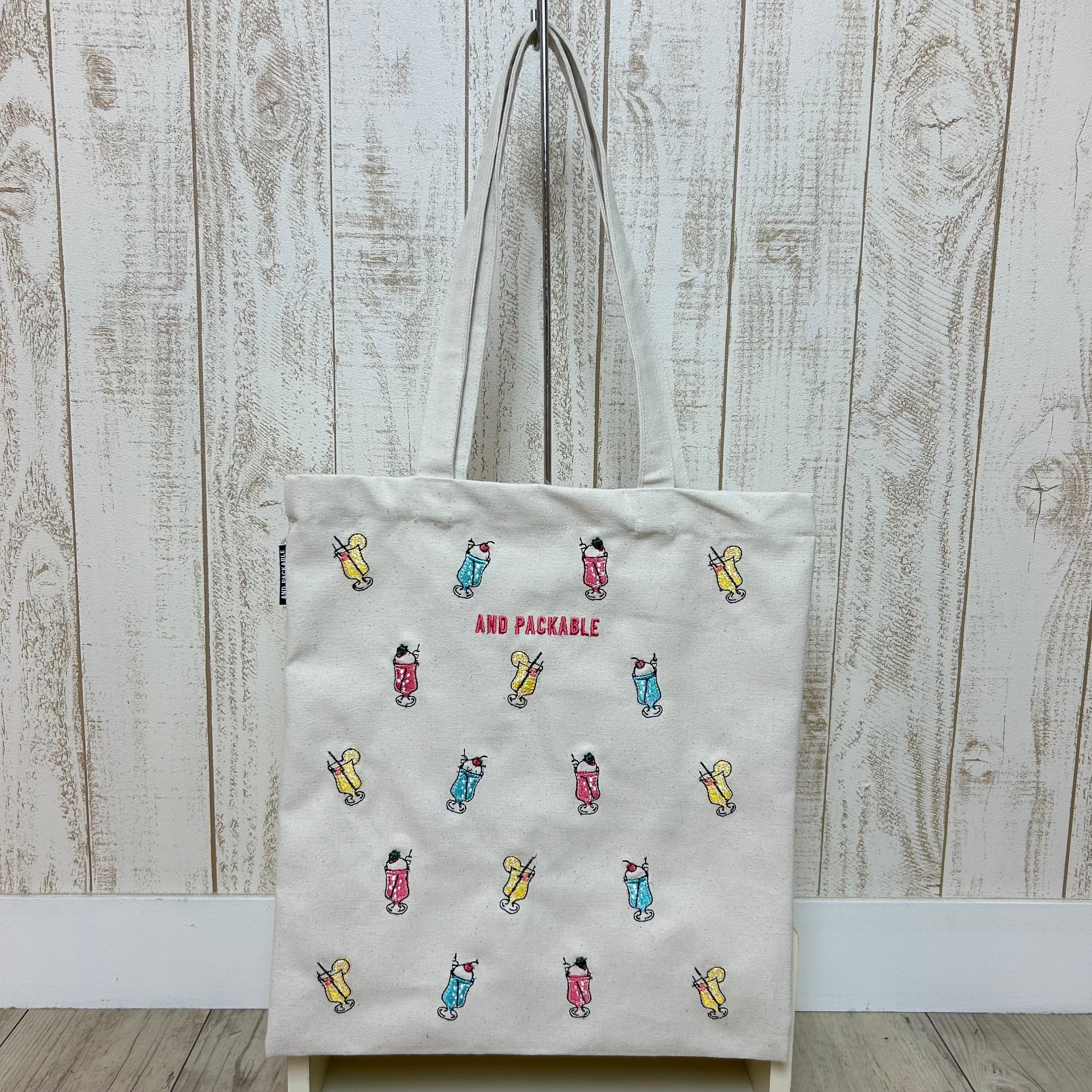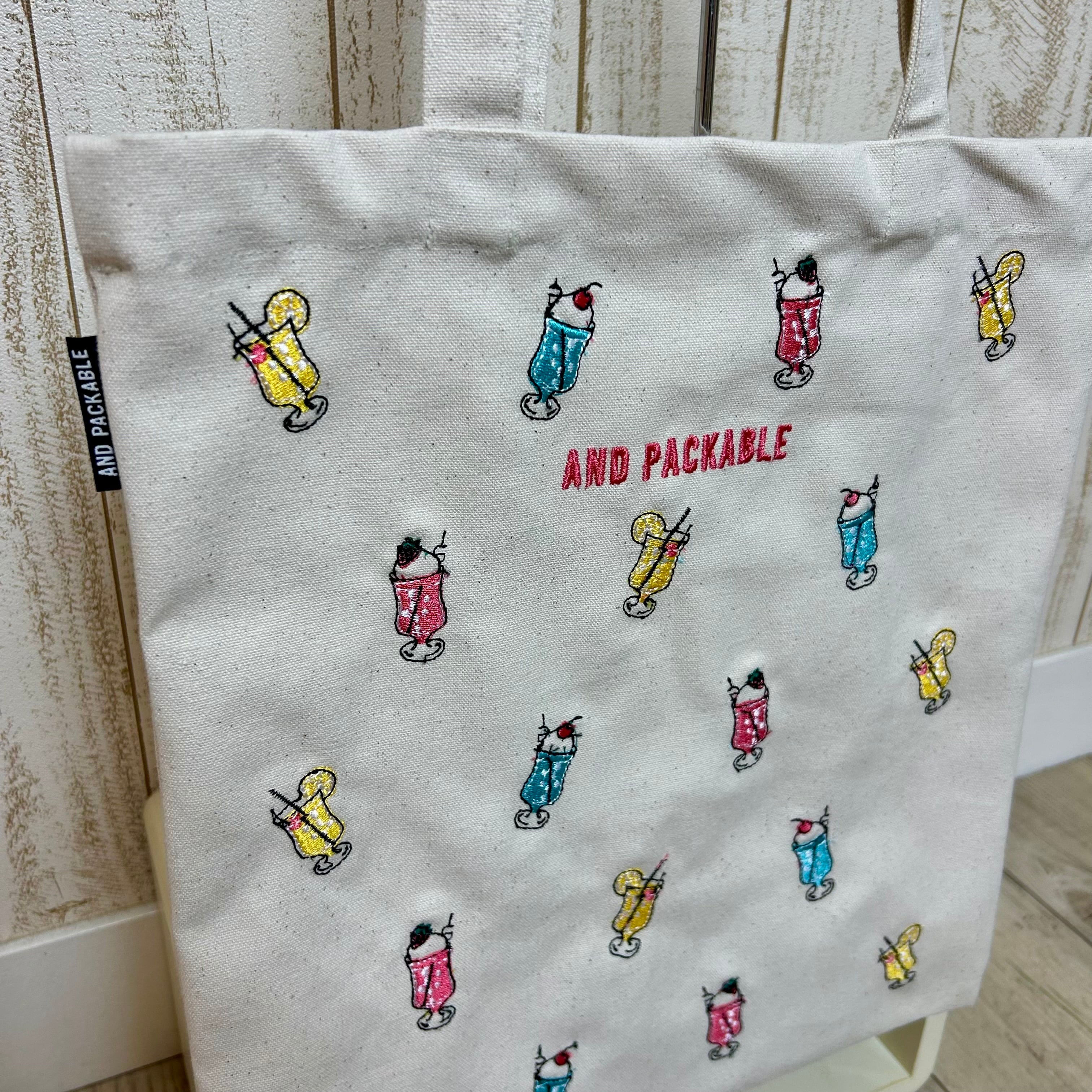 :【AND PACKABLE】ソーダ刺繍トートバッグ(68627)