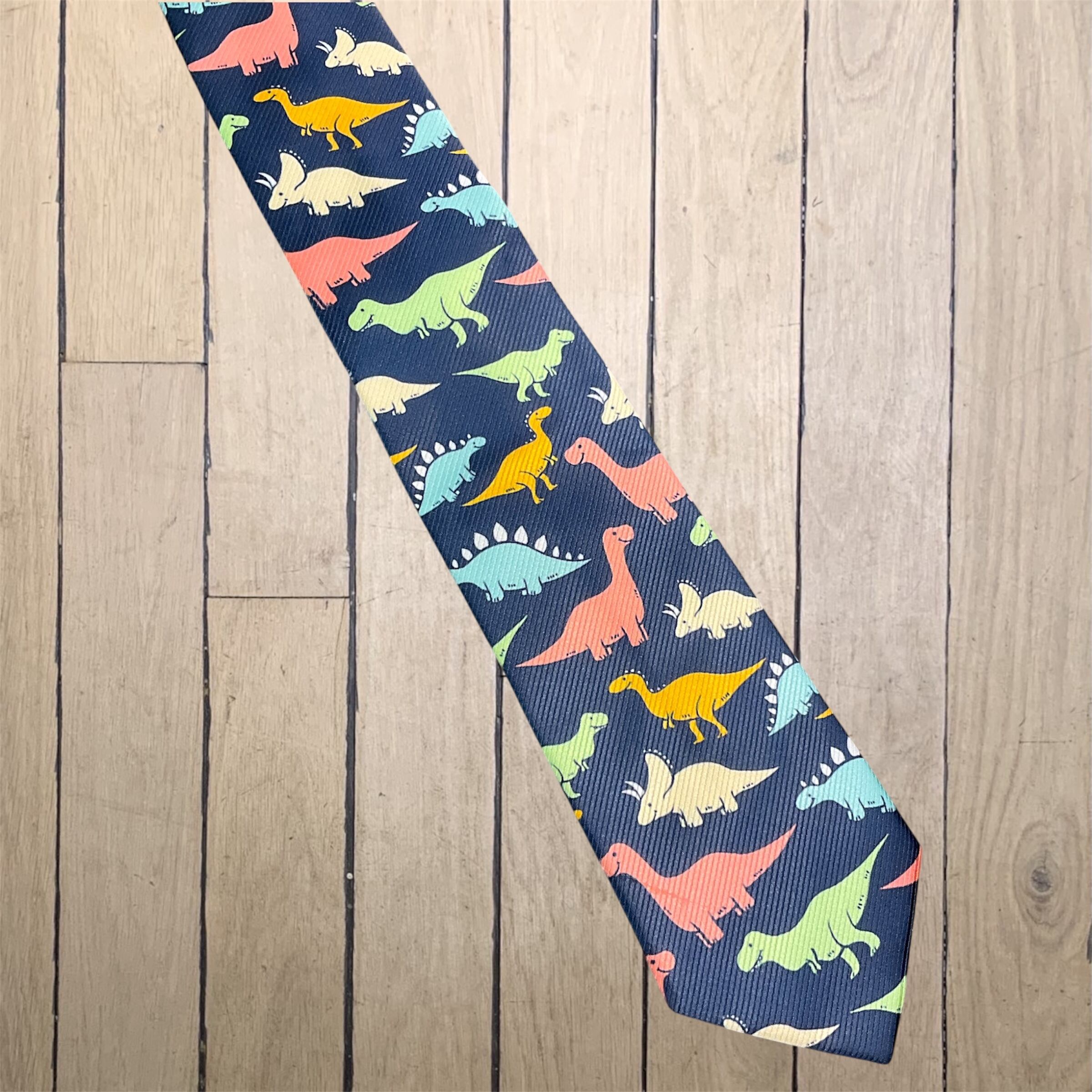 ゆるっと可愛いイラストの恐竜総柄ネクタイ❤︎