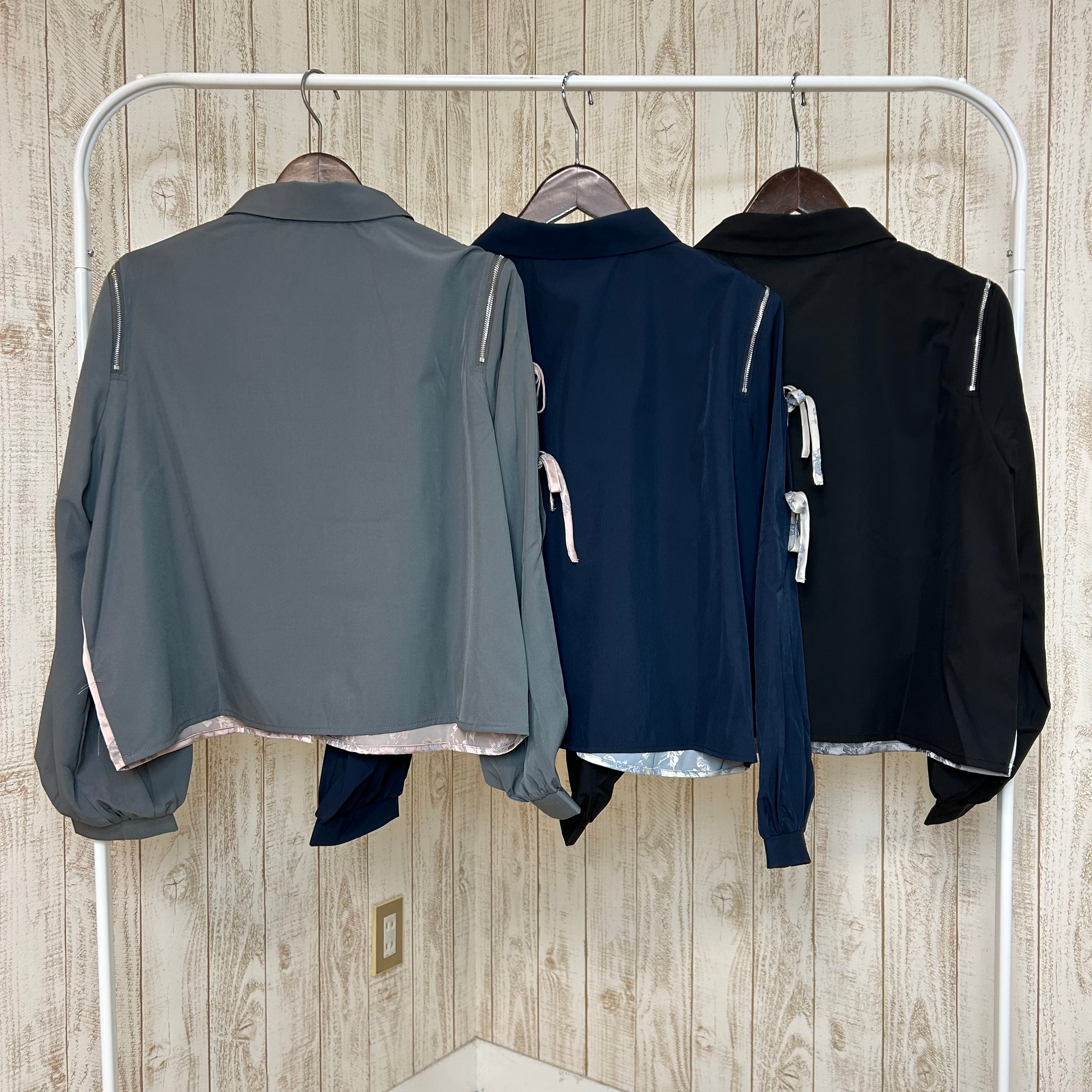 :長袖ジップ付きリボンショートブラウス(40135)