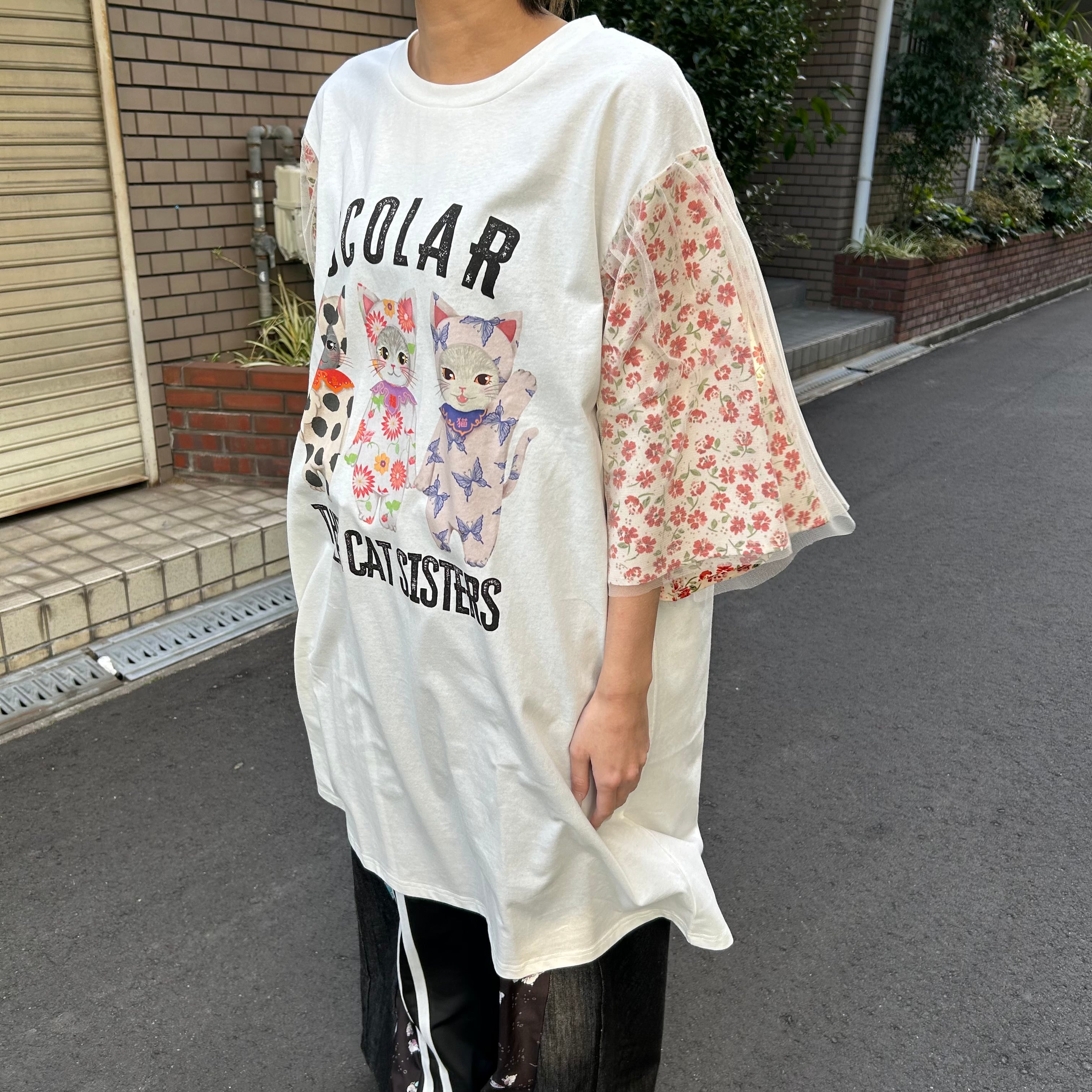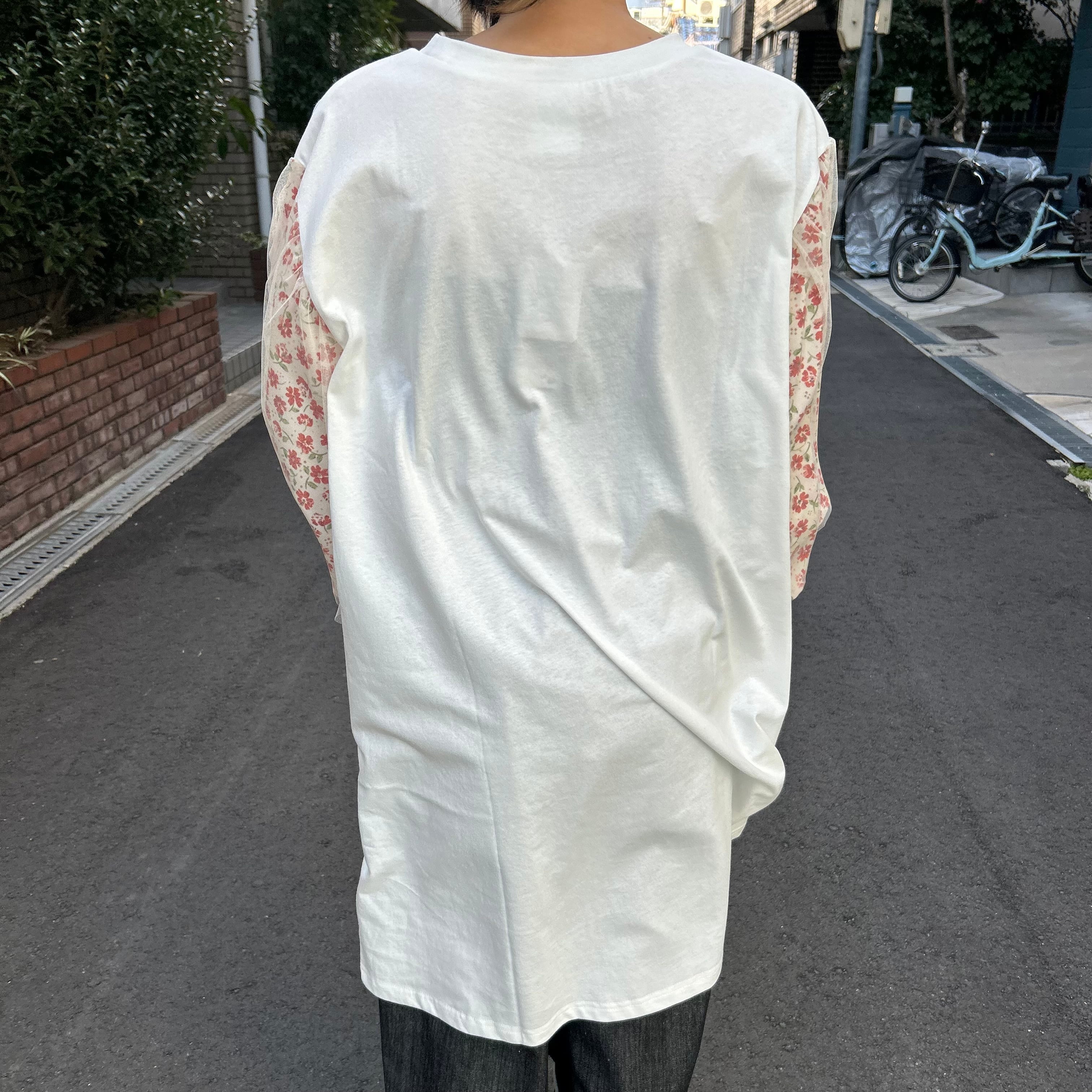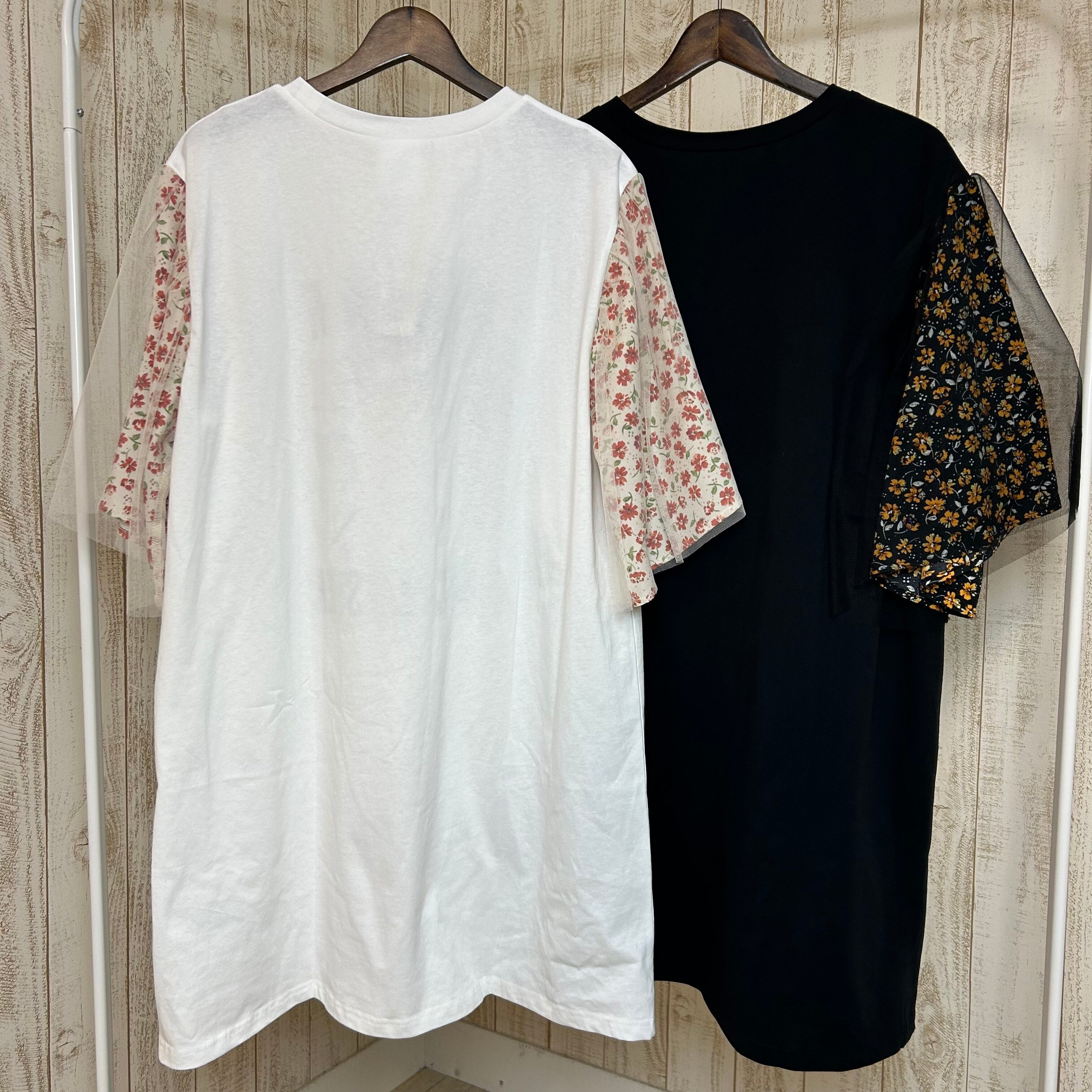 袖の小花柄とドッキングされたチュールがポイント!