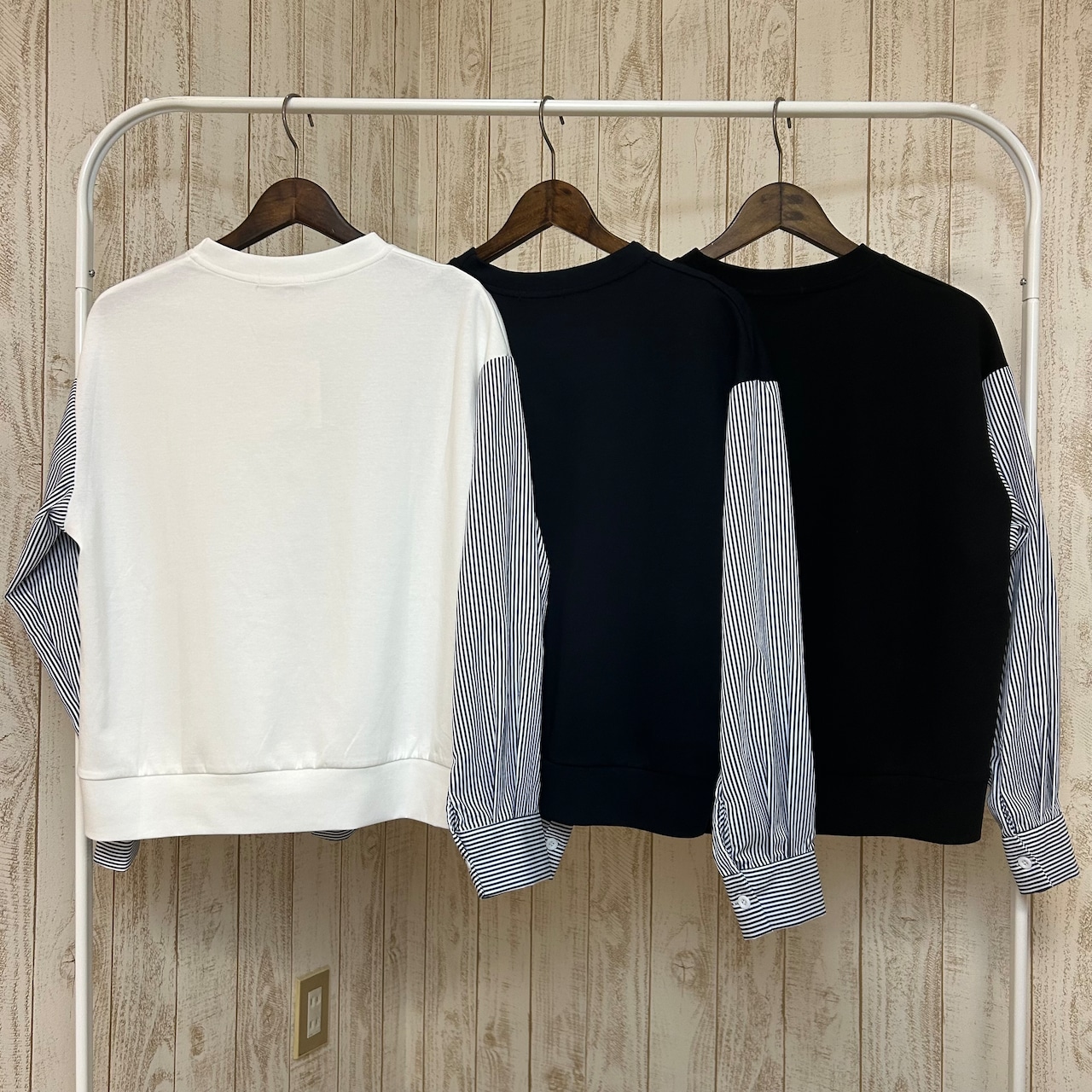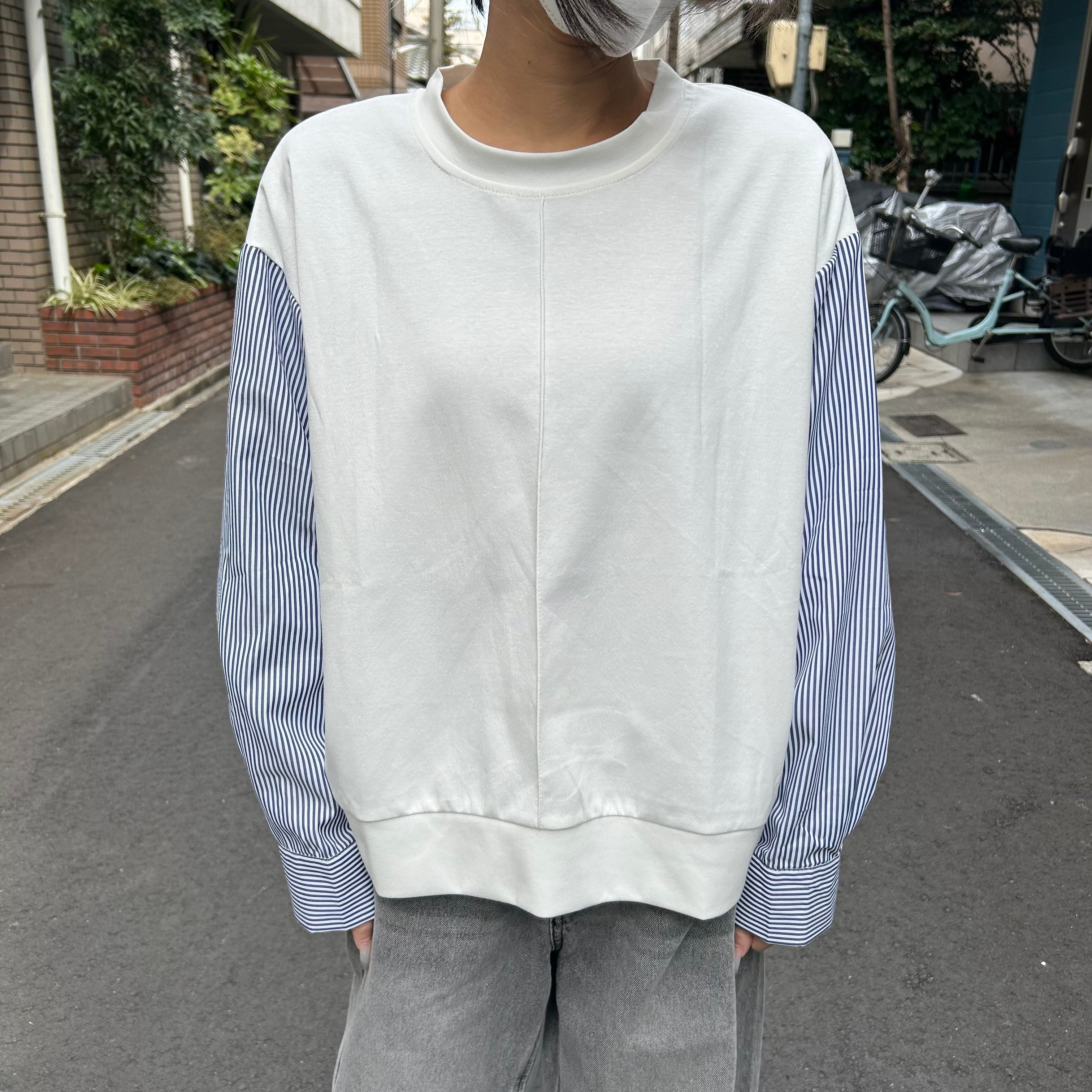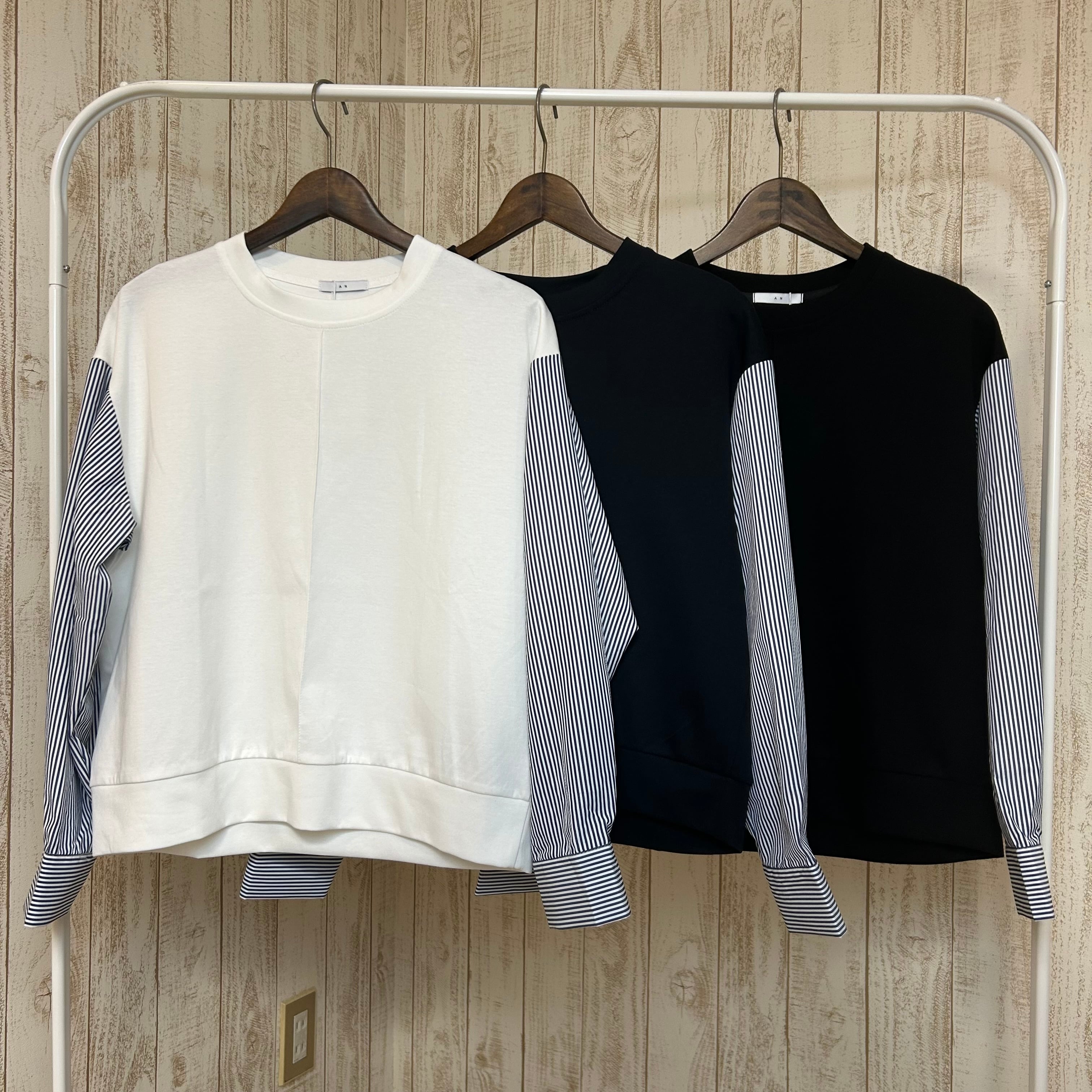 :無地×ストライプ切替トップス(AN-0470)