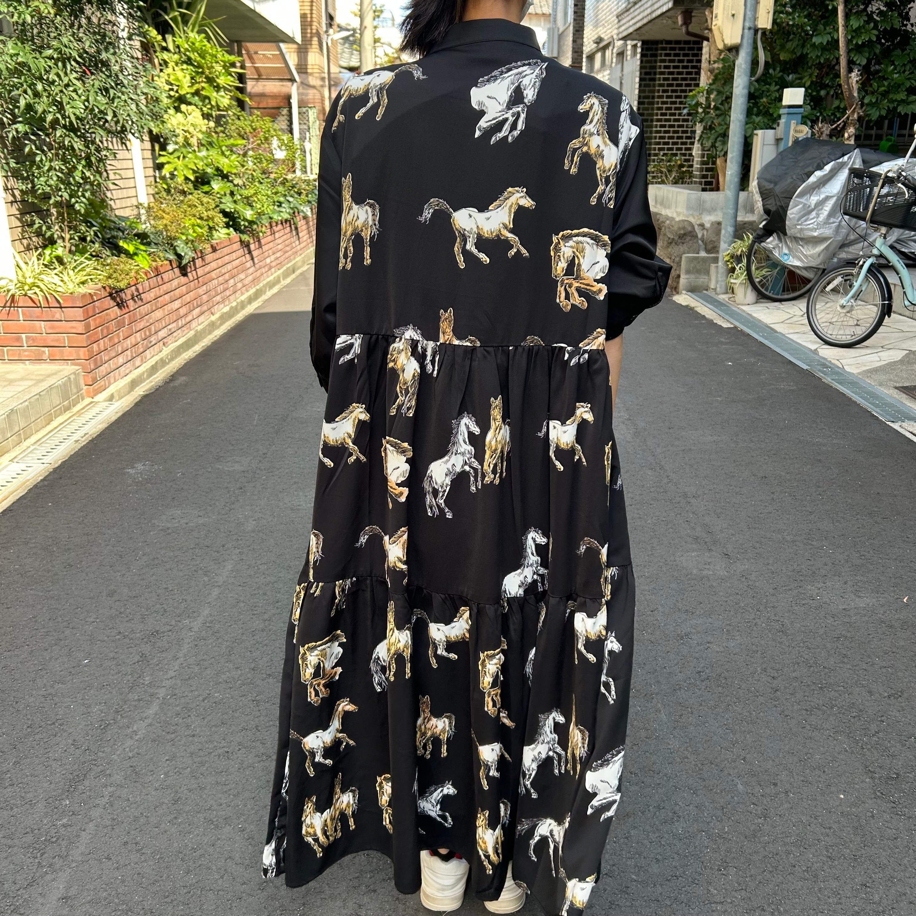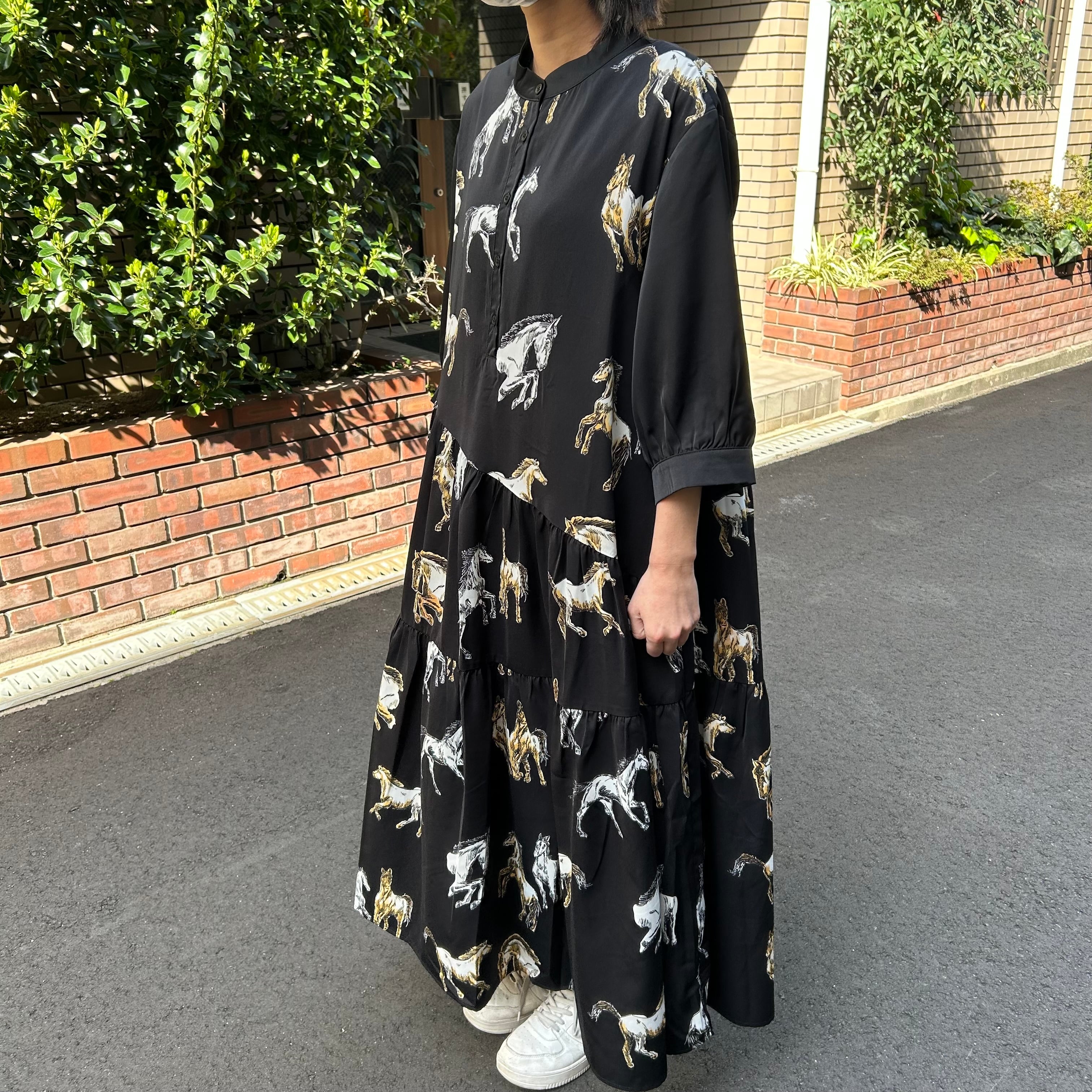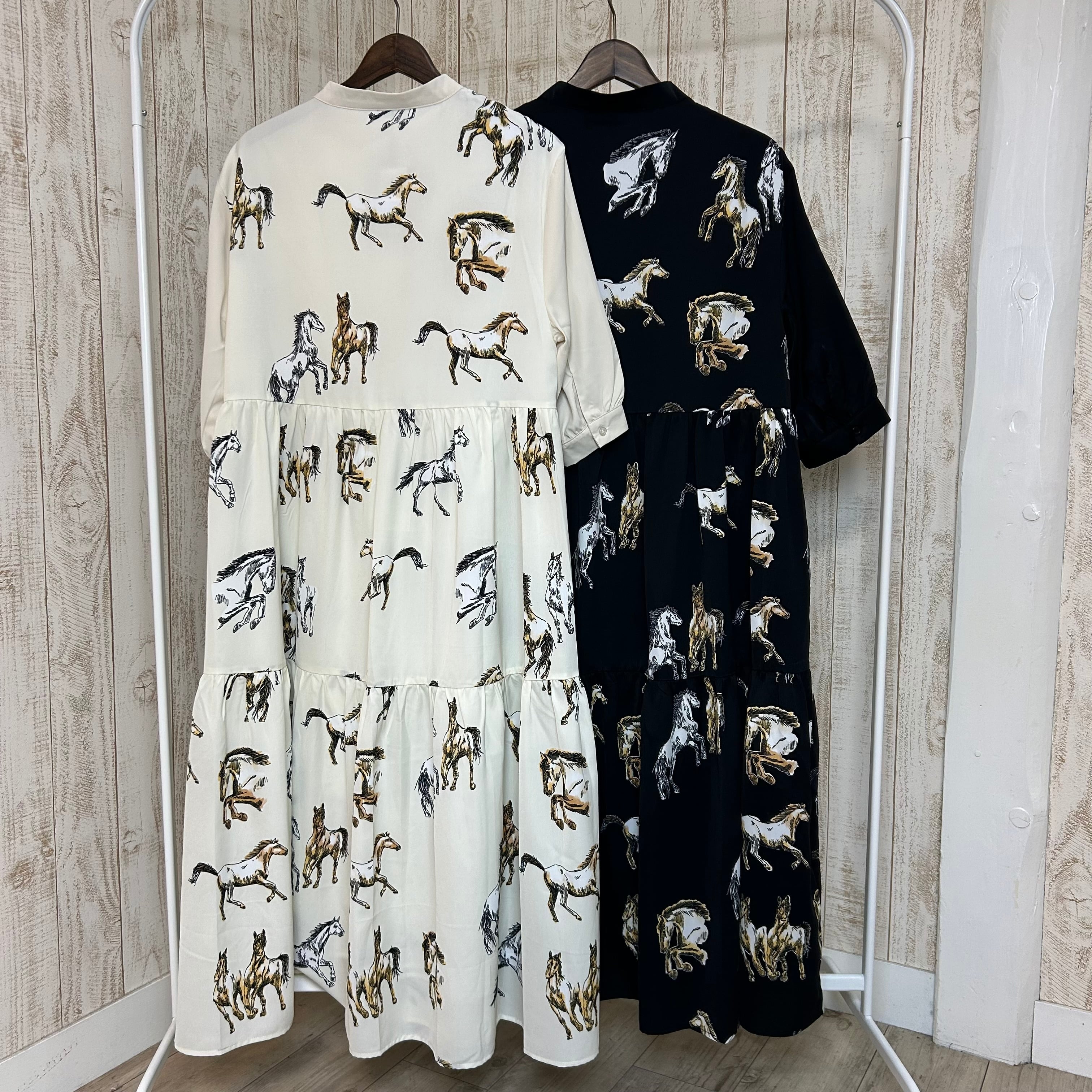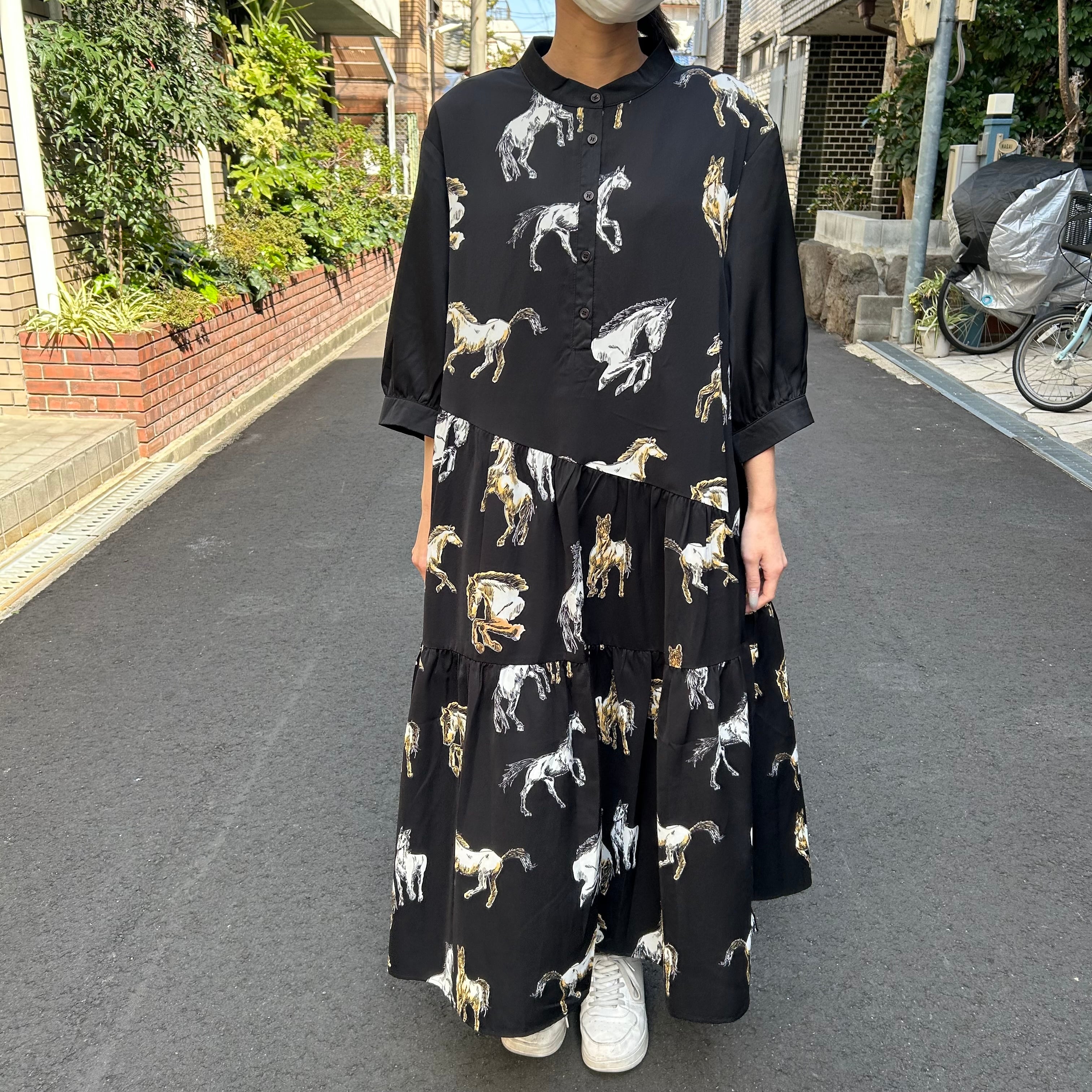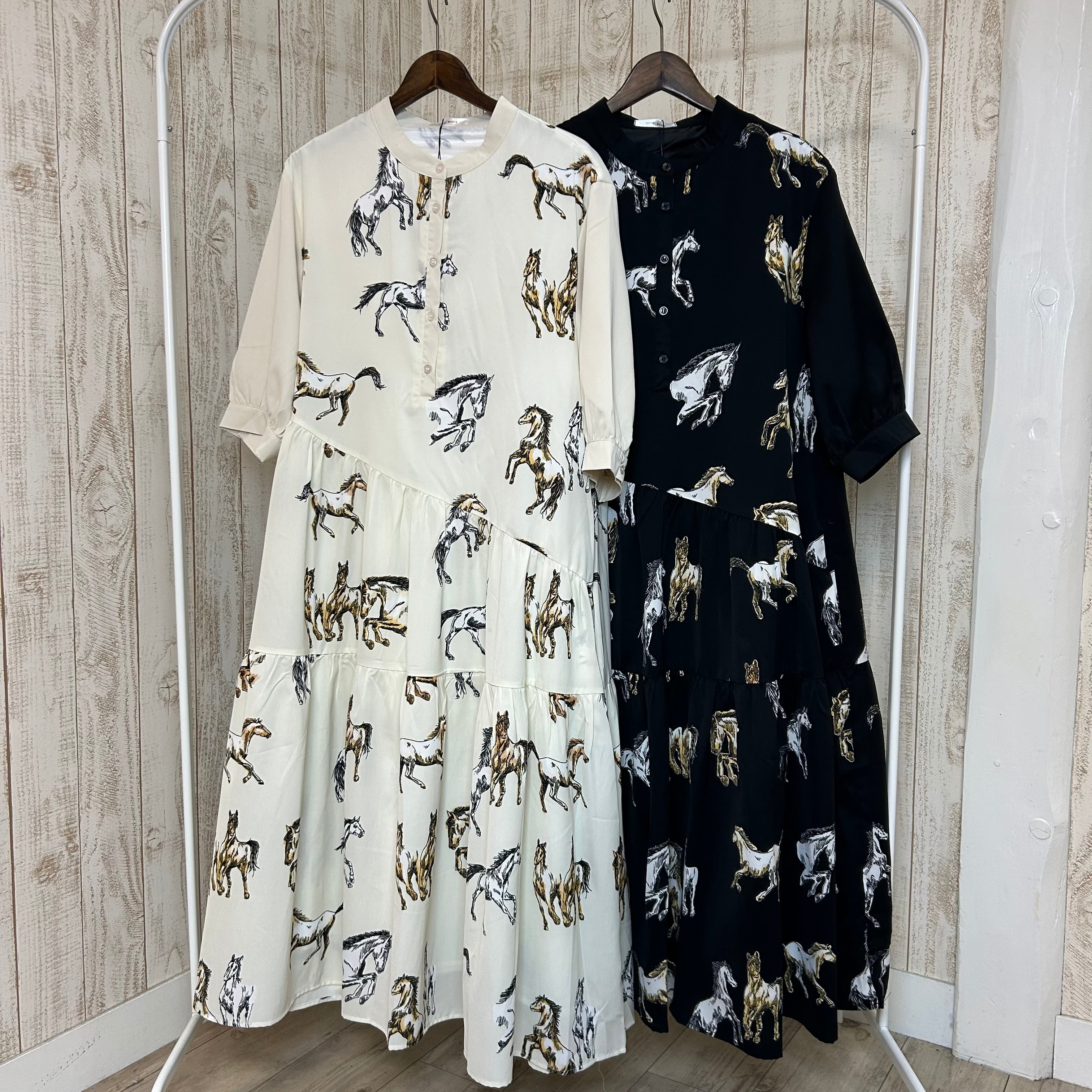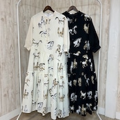:ホース柄アシメ切替ワンピース(C-3702)