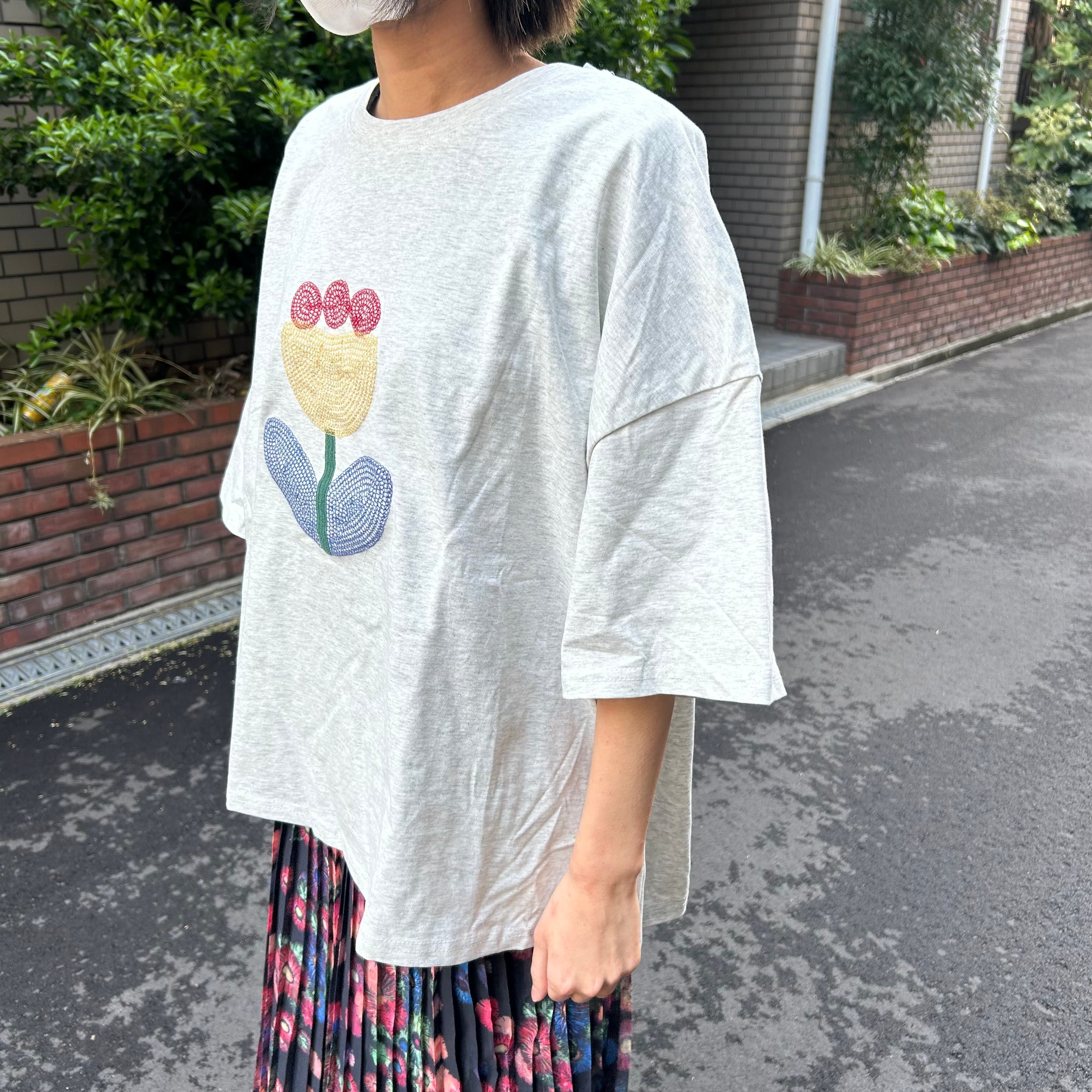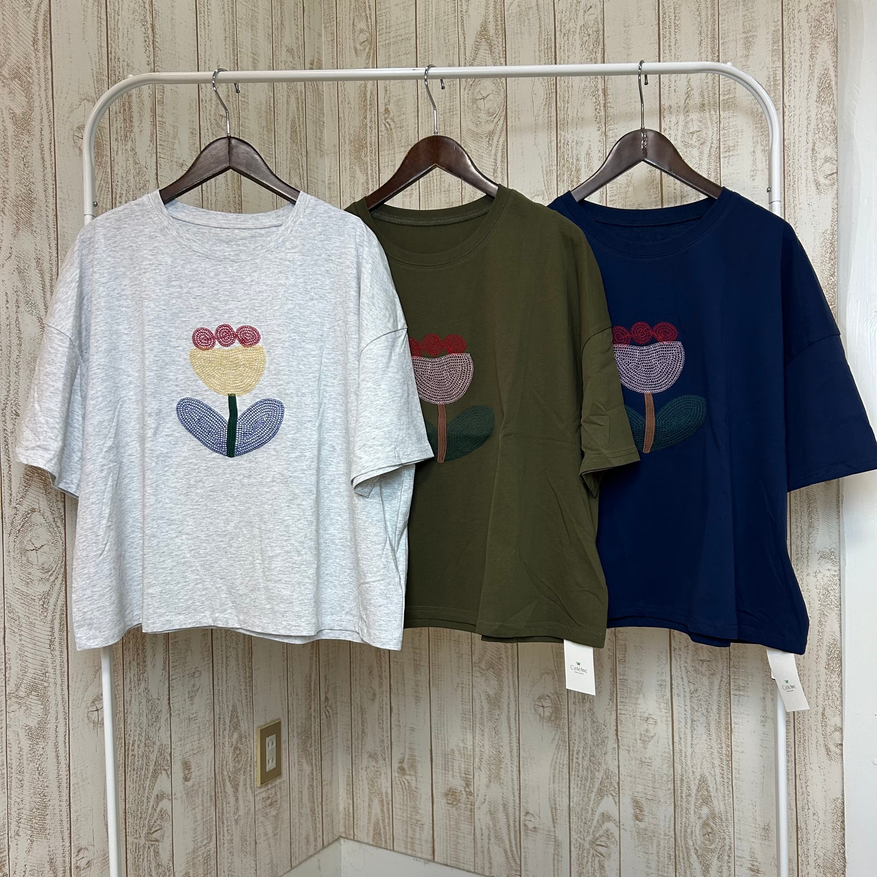 手書き風なチューリップが刺繍されたデザイン❤︎身幅広めでゆったり着れますよ☺︎
