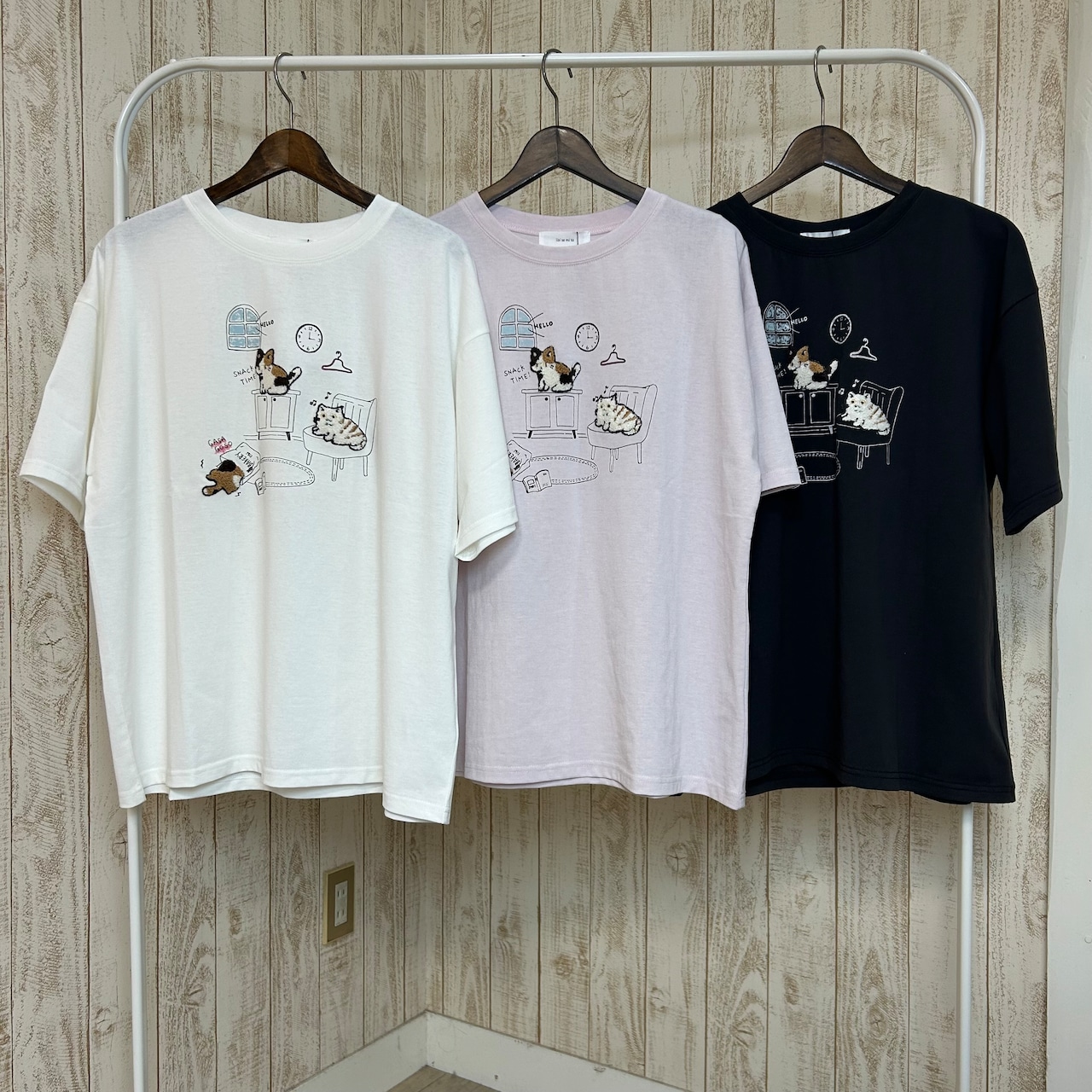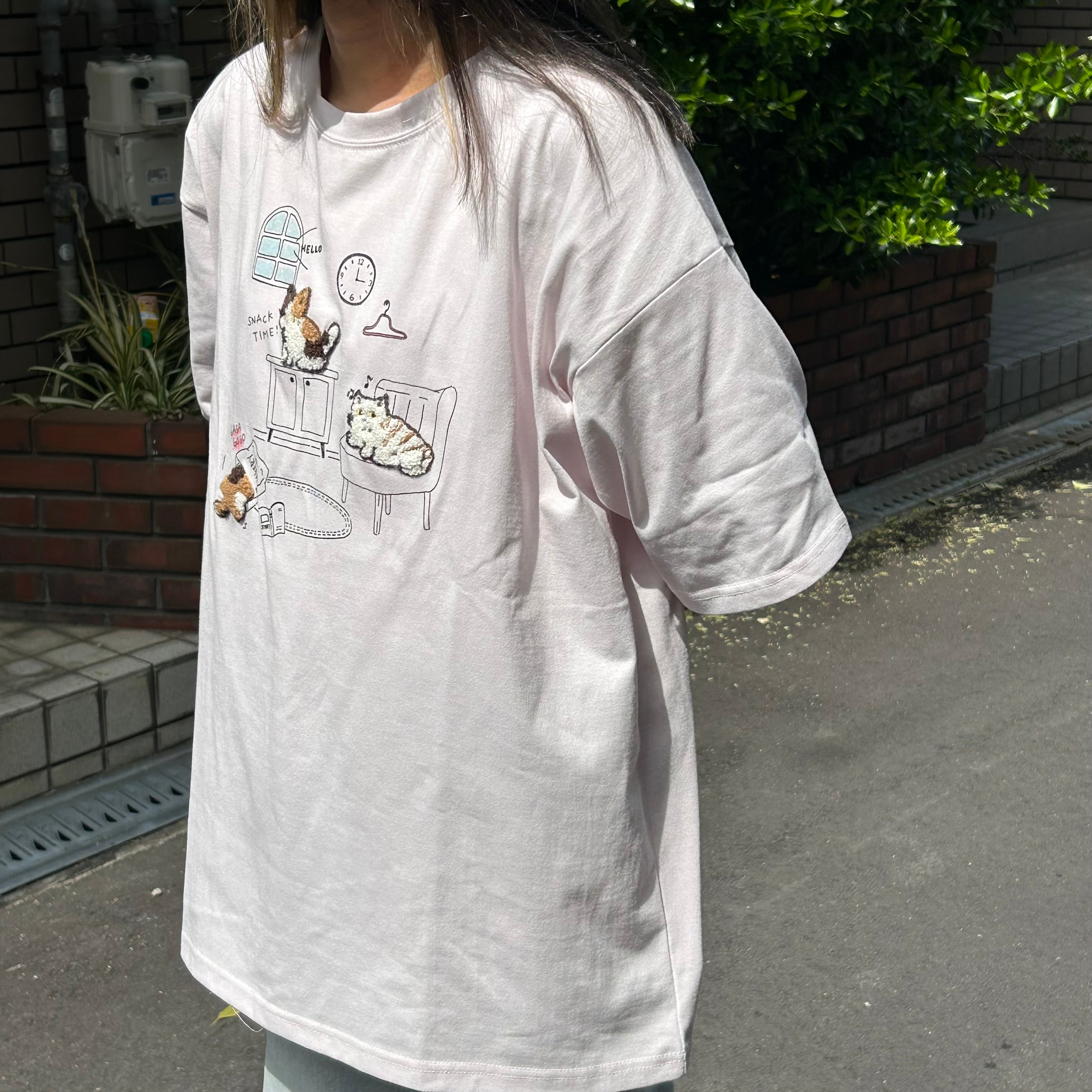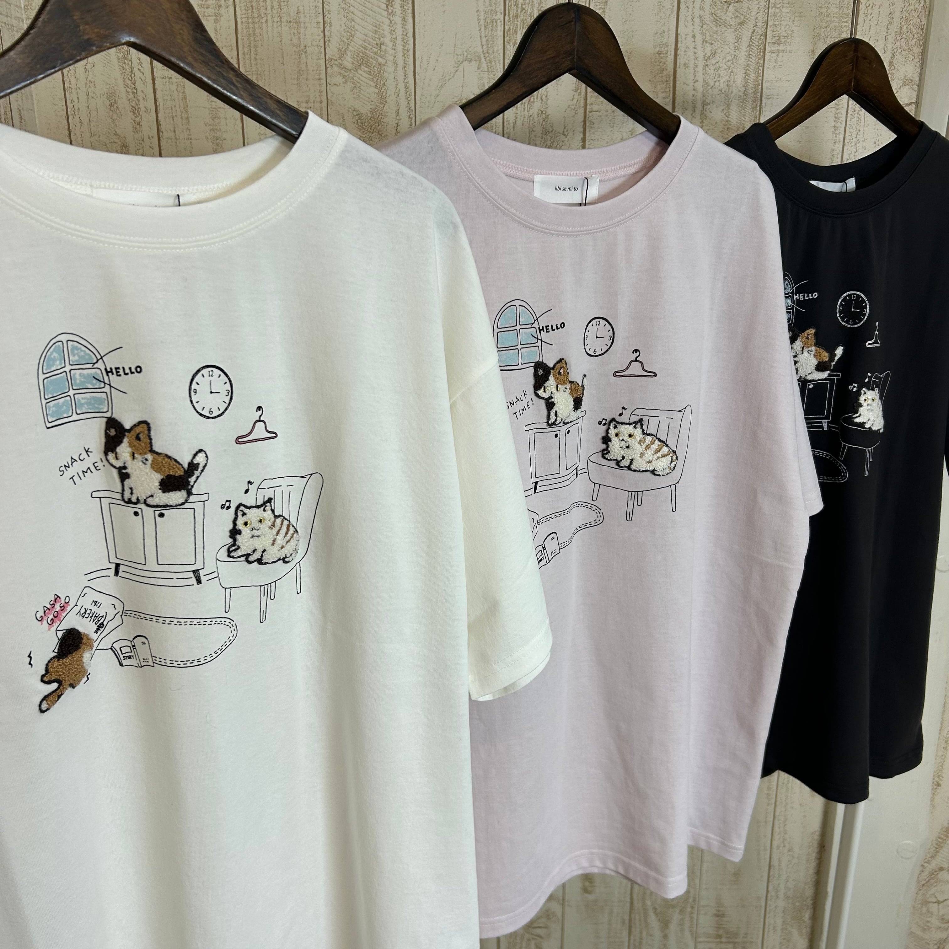 かわいいにゃんこ達が刺繍されたTシャツ♡