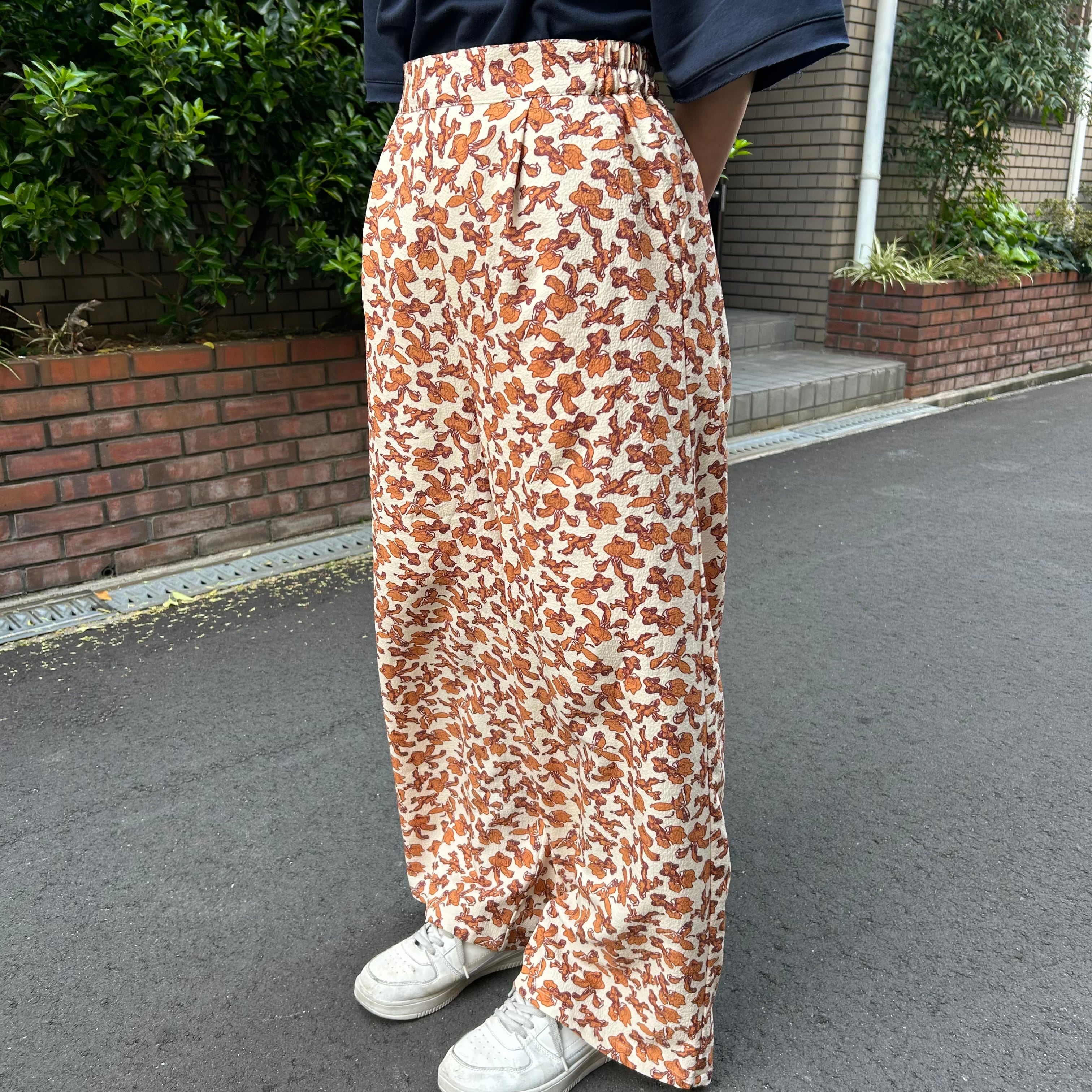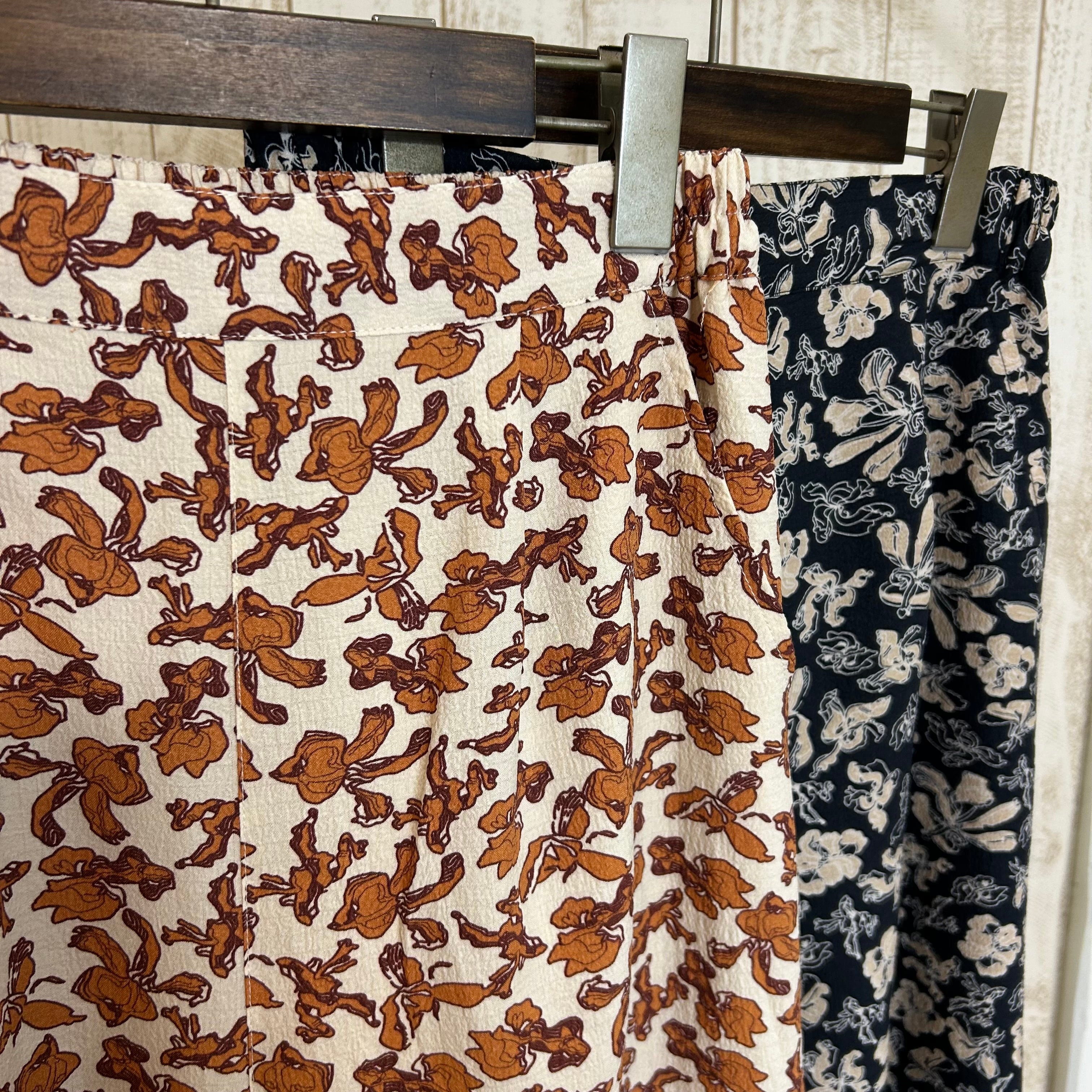 ベーシックなブラックとPOPなオレンジどちらのカラーも可愛いです。同じ柄のブラウスとのセットアップもできますよ。