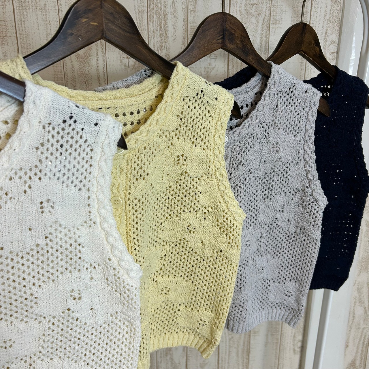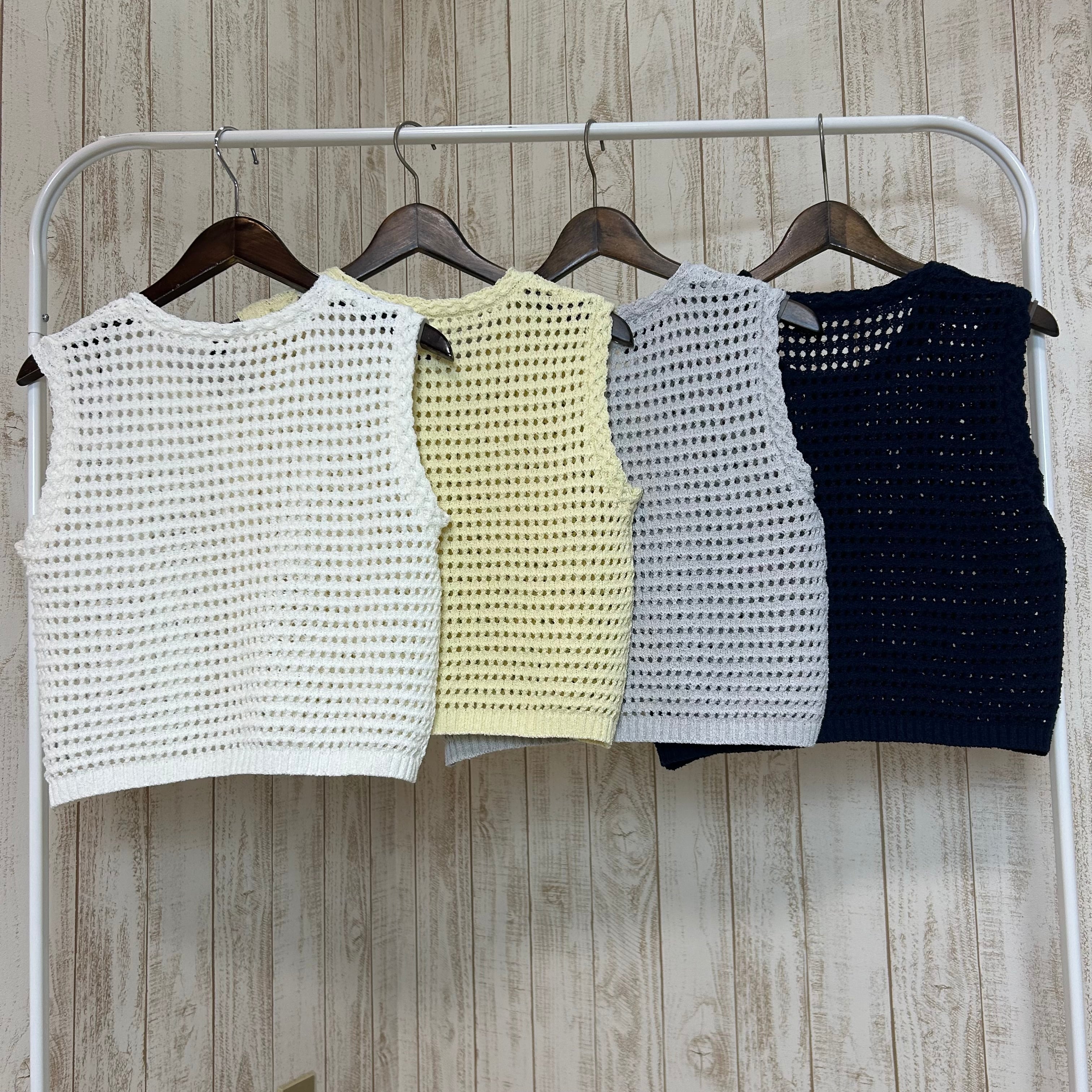春の定番のかぎ編みのベスト。