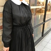 .merlotシアー素材バンドカラーワンピース(870110008982)