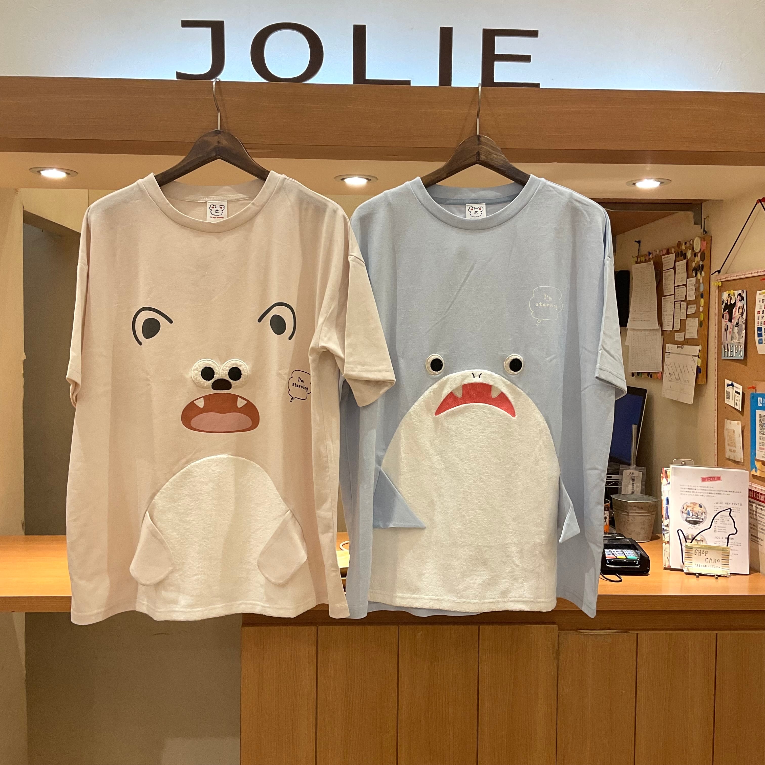 お腹が空いたくまさんとサメさんの2デザインがあるロング丈Tシャツ(º﹃º )