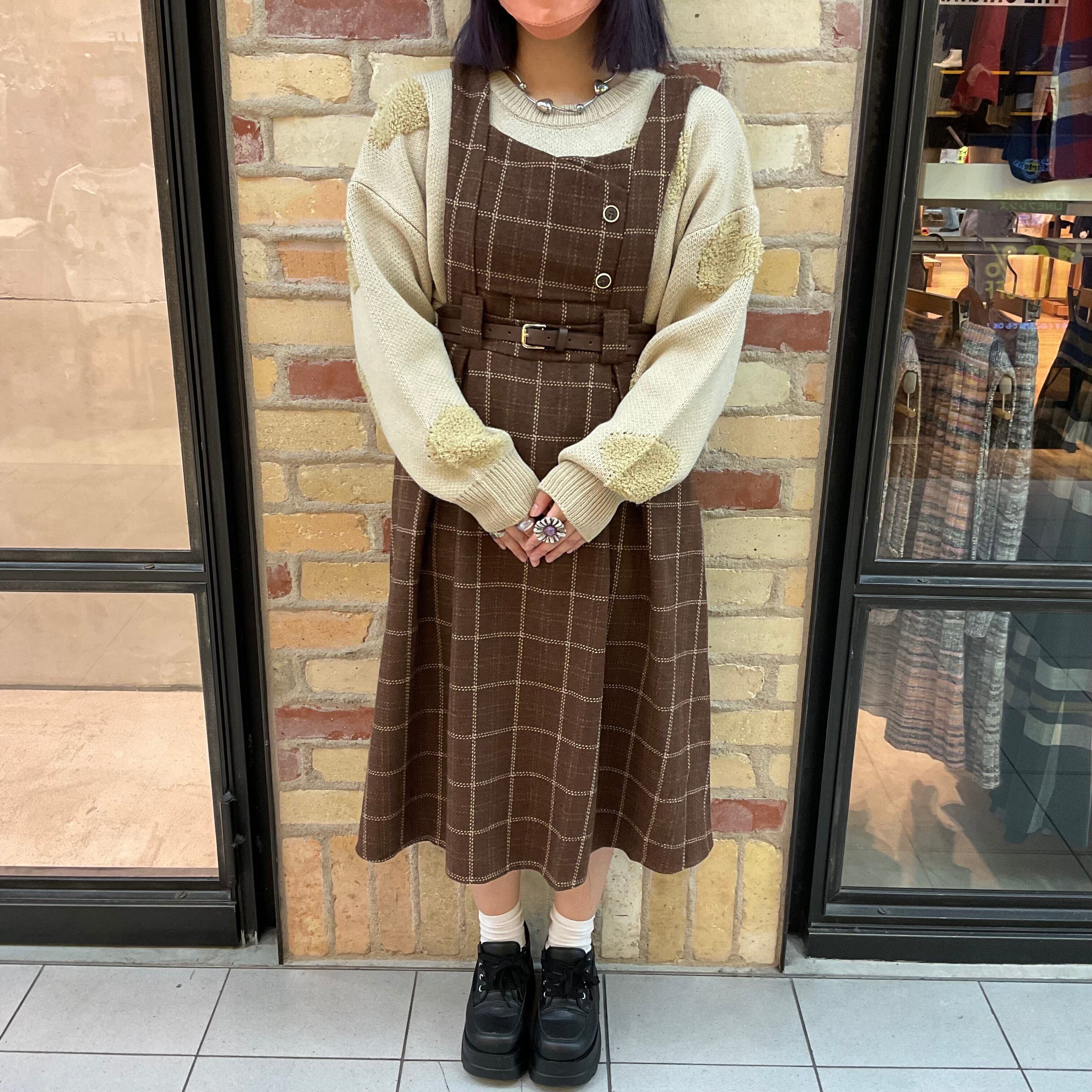 .ベルト付きチェックジャンパースカート(AE0549)